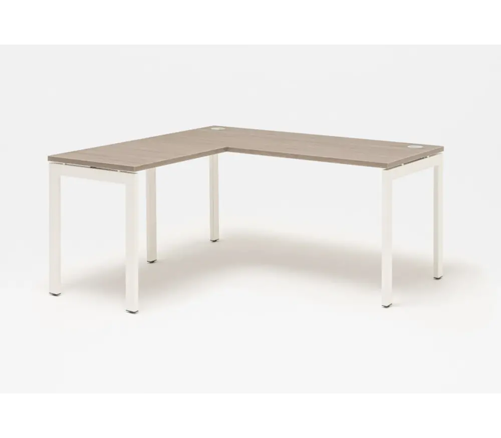 Les plateaux sont disponibles en plusieurs finitions avec un revêtement en mélamine de haute qualité, durable et facile à entretenir. Pour plus de fonctionnalité, le bureau peut être complété par des extensions, des passe-câbles ou une mediabox équipée (4x230V, 2xRJ45, 1xUSB, 1xHDMI), garantissant un espace de travail organisé et bien rangé.