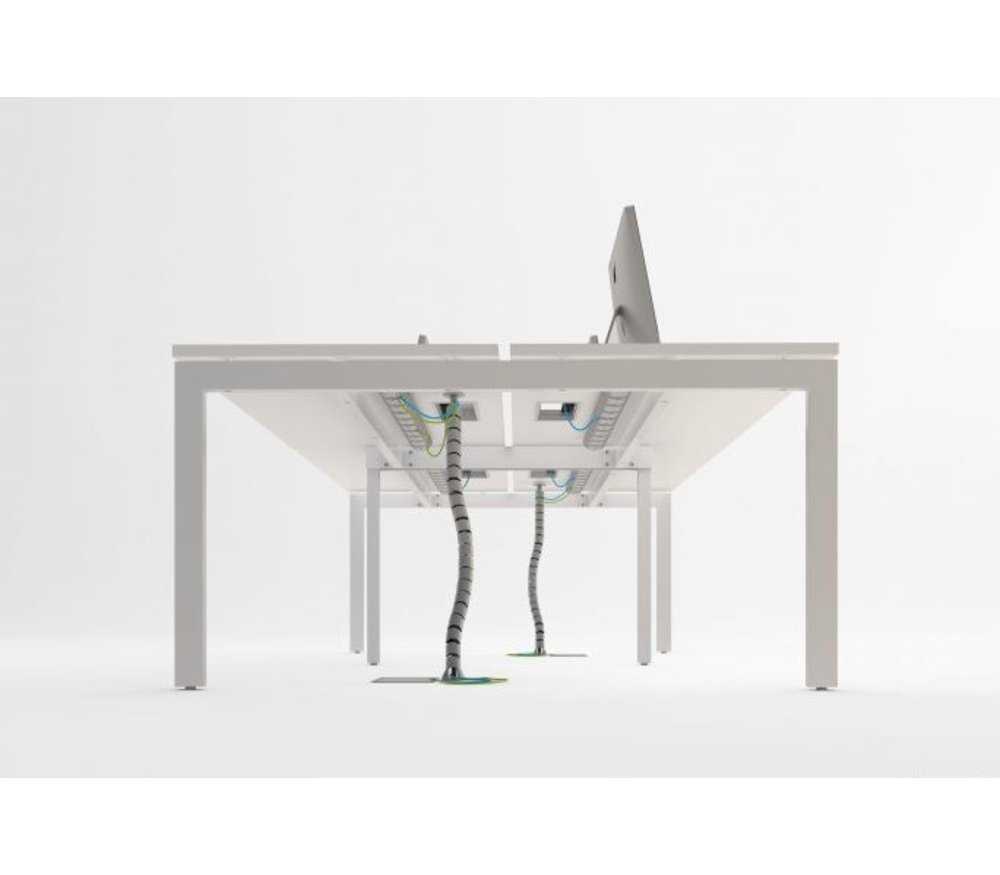 - Passe-câbles en option: Passage de câbles (passage rond à gauche et à droite du bureau), Passage de câbles milieu (avec abattant au milieu de votre bureau), Passage de câbles milieu + Media box (avec abattant au milieu de votre bureau + électrification : 4x230V, 2xRJ45, 1xUSB, 1xHDMI