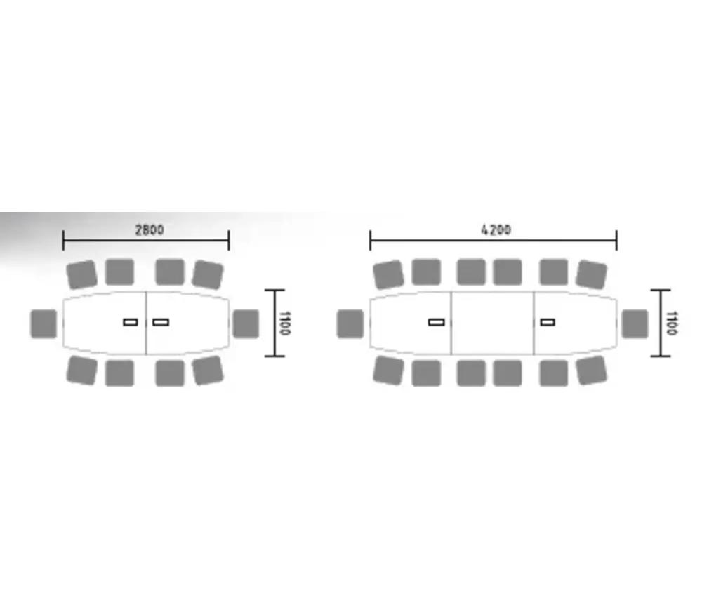 La MDD ST-Meeting propose une longueur standard de 280 cm, offrant ainsi un espace suffisant pour accueillir entre 10 et 12 personnes confortablement. Cependant, grâce à l'option de rallonges de 140 cm, vous pouvez facilement étendre la table jusqu'à 700 cm pour de plus grandes réunions ou conférences.