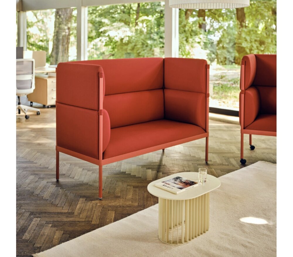 Le Mdd Stilt canapé high avec dossier haut fonctionne comme un élément d'ameublement des espaces de bureau, mais aussi des intérieurs résidentiels, publics, de restaurants et d'hôtels.