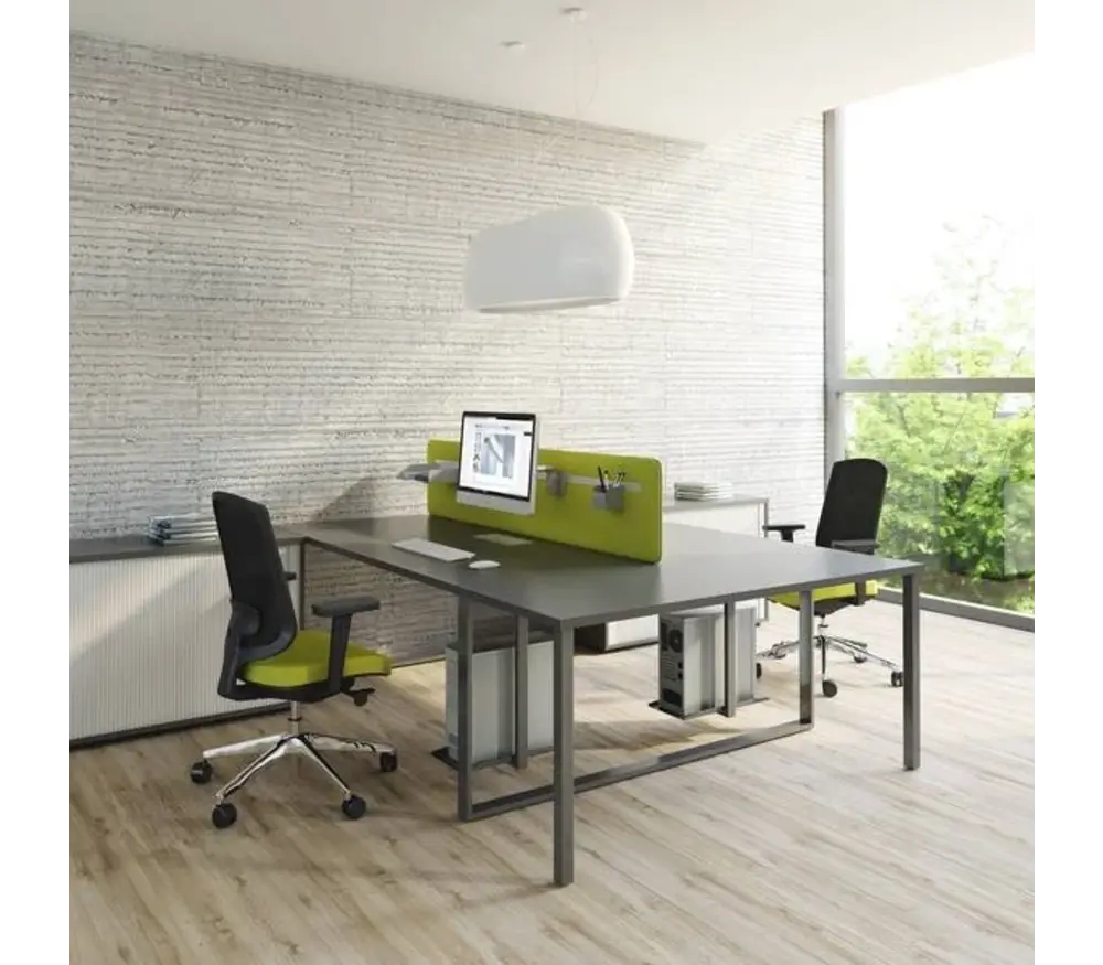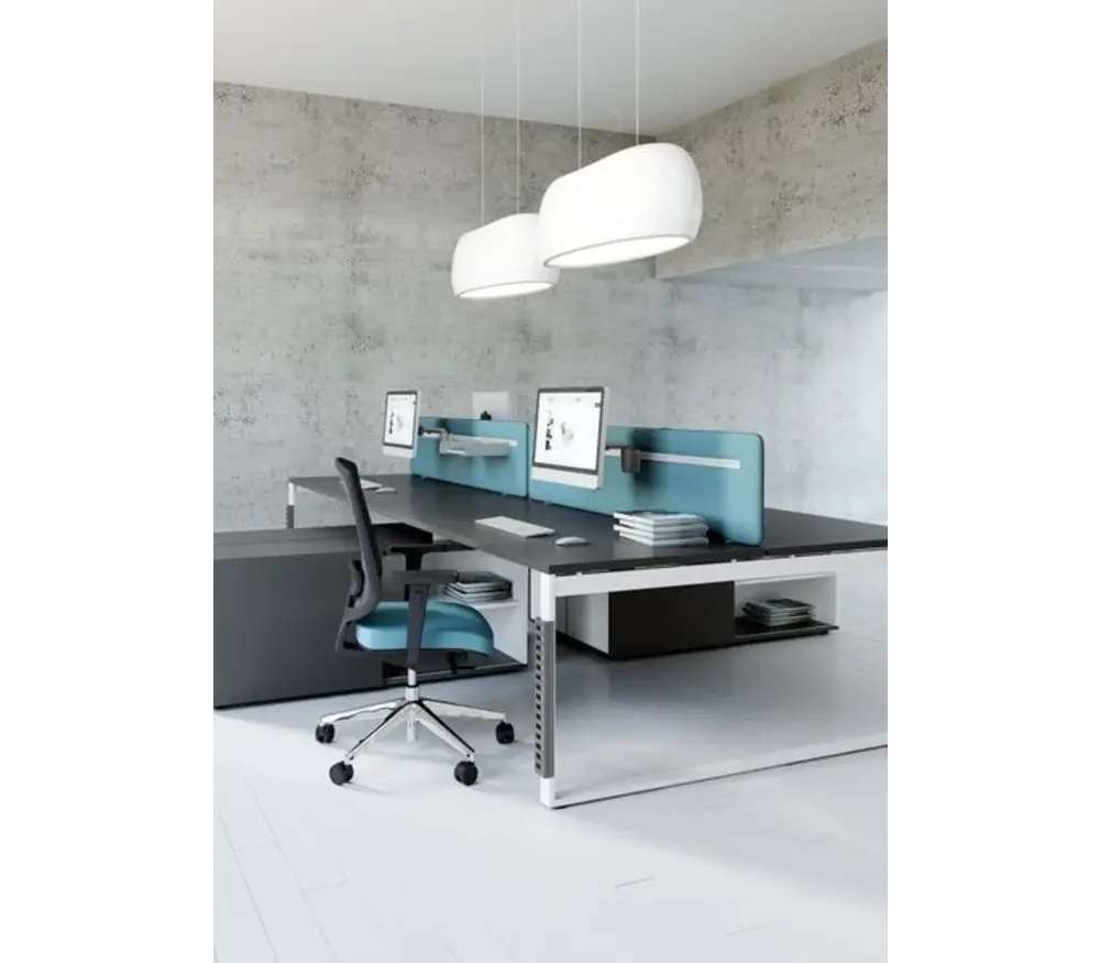 Le séparateur Twin permet de diviser les espaces de travail sans fermer visuellement l’environnement. Il crée un équilibre idéal entre collaboration et concentration, essentiel dans les bureaux modernes.