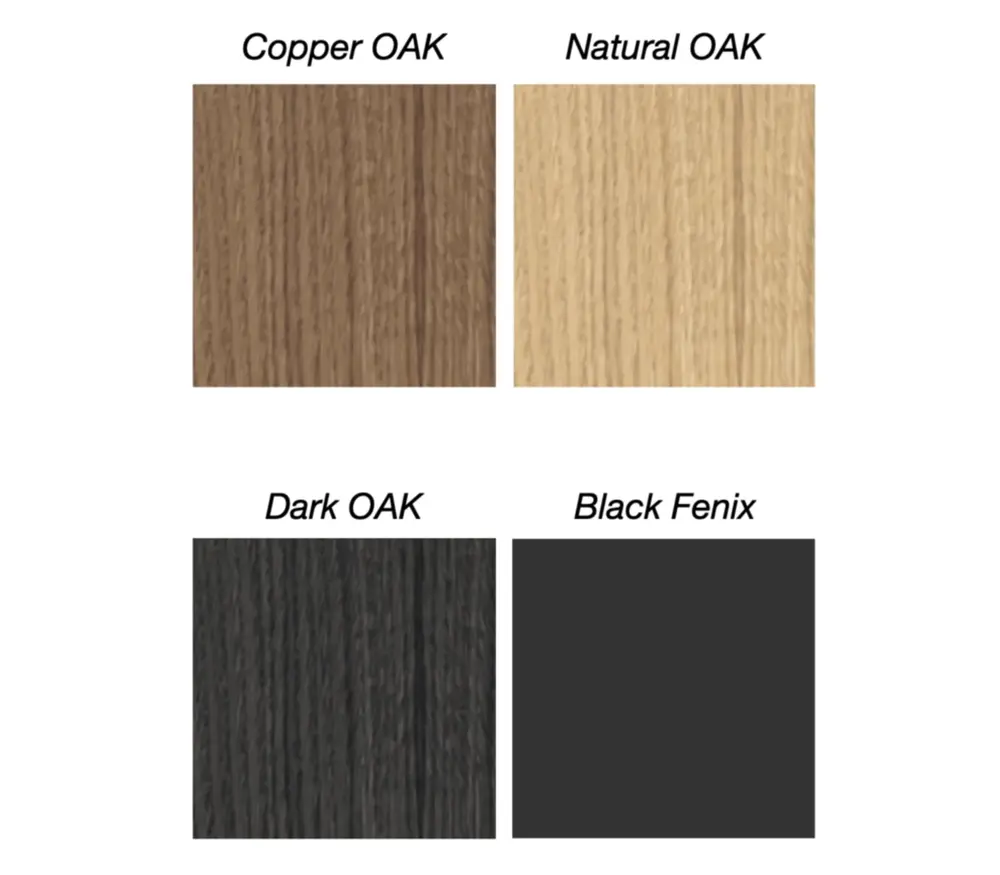 - Matière : placage chêne ou finition Fenix (fingerproof), aluminium extrudé