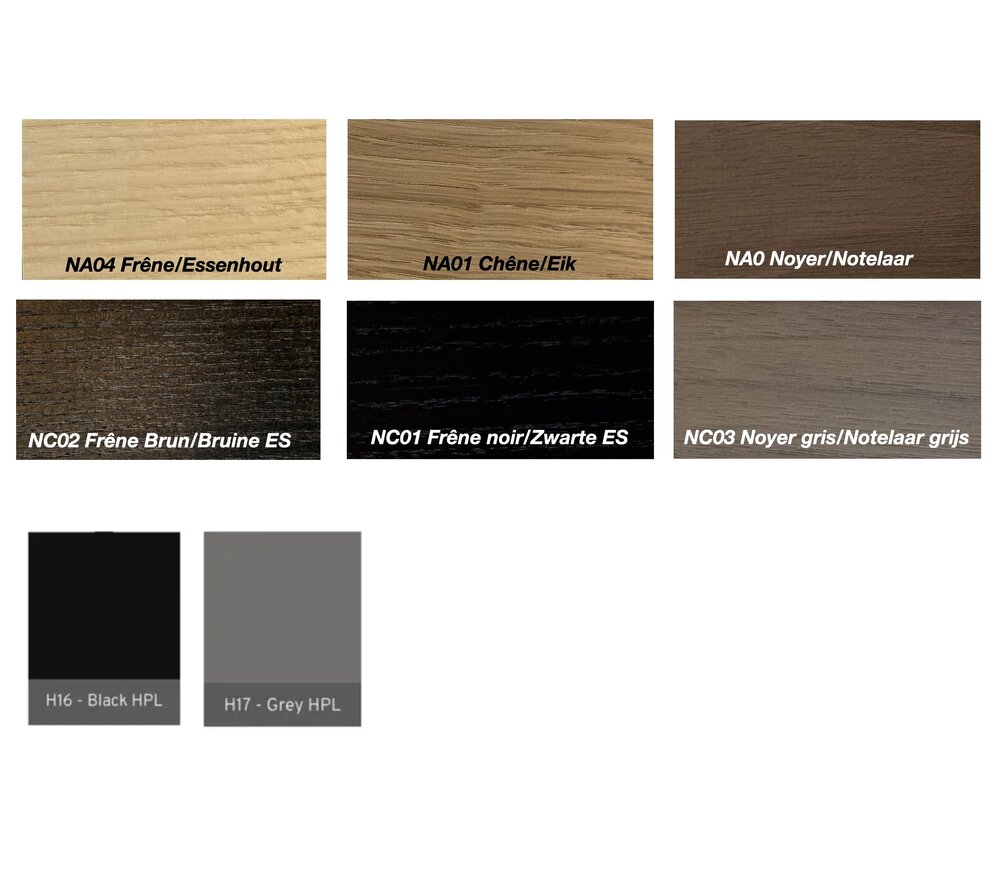 - Matière: placage bois, métal et Fenix noir ou gris (bureau HPL)