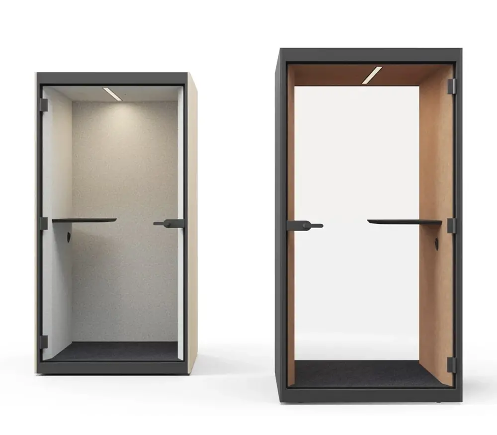 Narbutas Sonus Phonebooth est un espace confortable qui offre un environnement calme pour vos appels téléphoniques privés ou vos réunions vidéo à distance. Les modules acoustiques sont sans aucun doute la solution la plus rapide et la plus pratique pour les espaces où la création d’un tout nouvel espace clos serait trop coûteuse ou compliquée. Ceci est particulièrement pertinent pour les architectes qui conçoivent des bureaux modernes dans des bâtiments historiques ou d'autres structures présentant des contraintes spécifiques. Les modules acoustiques Sonus vous permettent d'utiliser efficacement différents espaces de bureau. Ils peuvent être placés dans un espace ouvert, tandis que les modules acoustiques sur roulettes peuvent être placés contre un mur, dans des alcôves ou les uns à côté des autres.