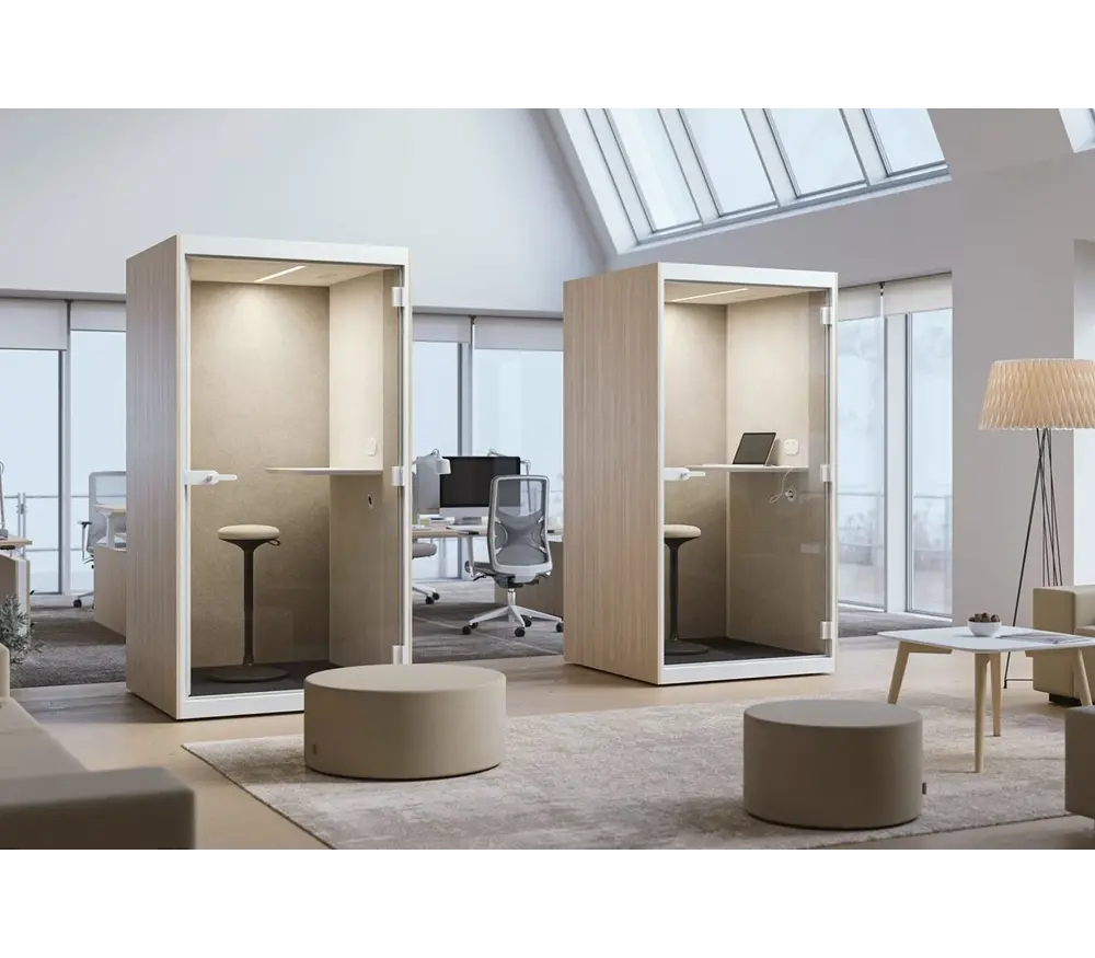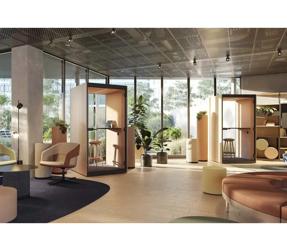 Les Narbutas Sonus pods acoustiques constituent une solution pratique à de nombreux défis auxquels les architectes sont confrontés lors de la conception de bureaux modernes pour répondre aux besoins des employés. Ces modules augmentent la productivité des employés, assurent intimité et confort et contribuent au bien-être général des employés.