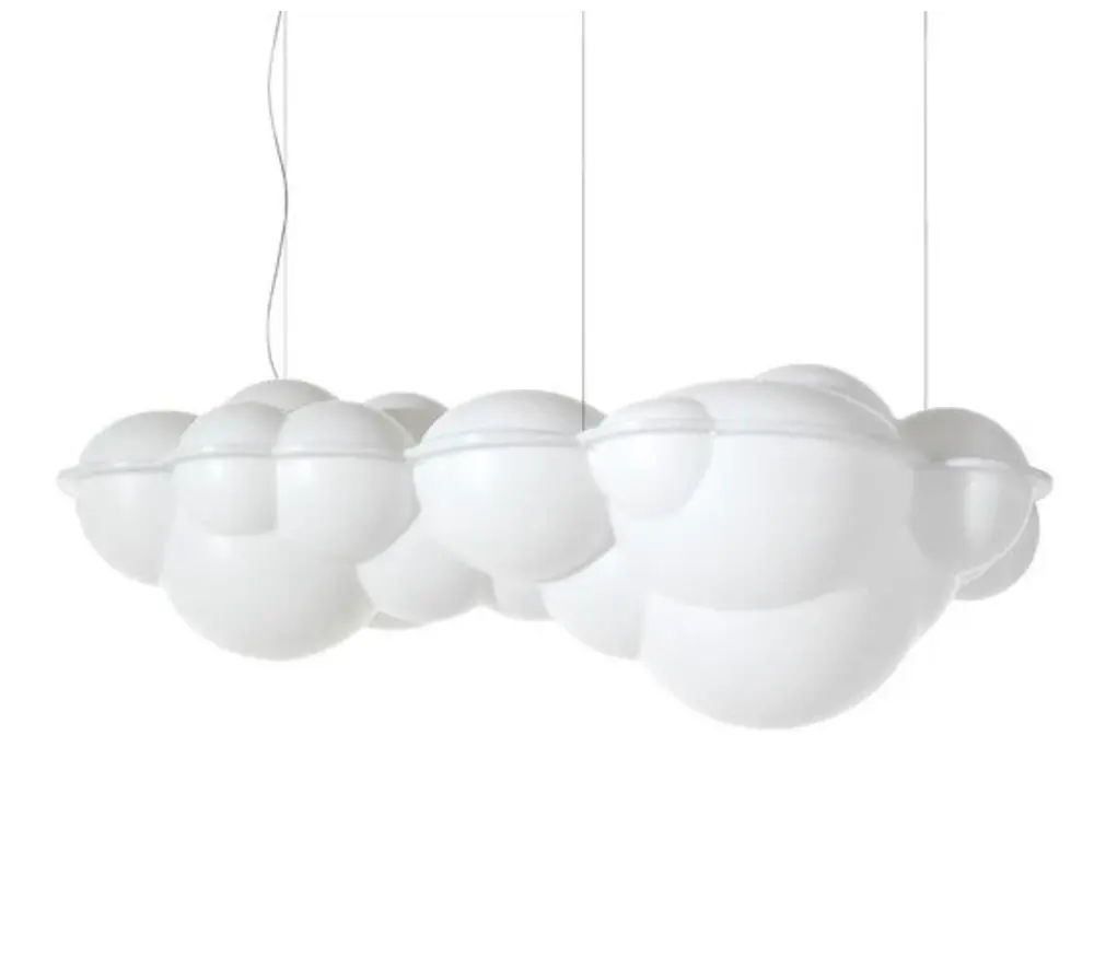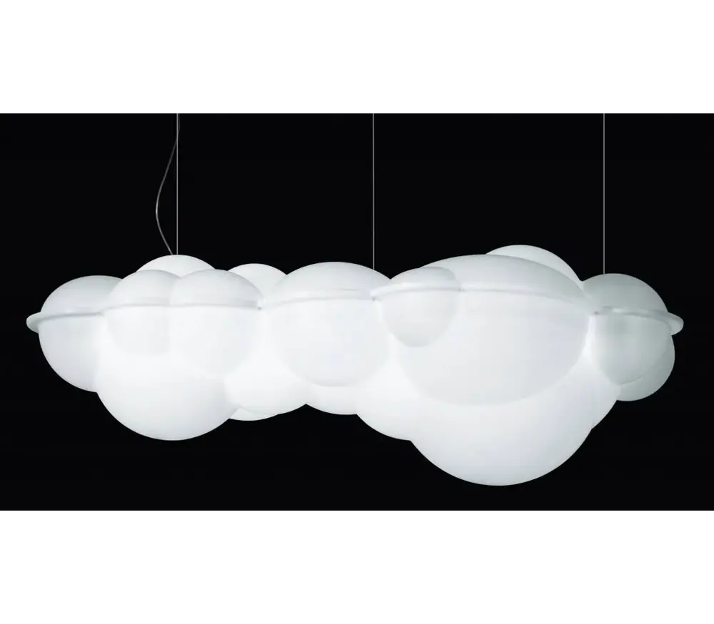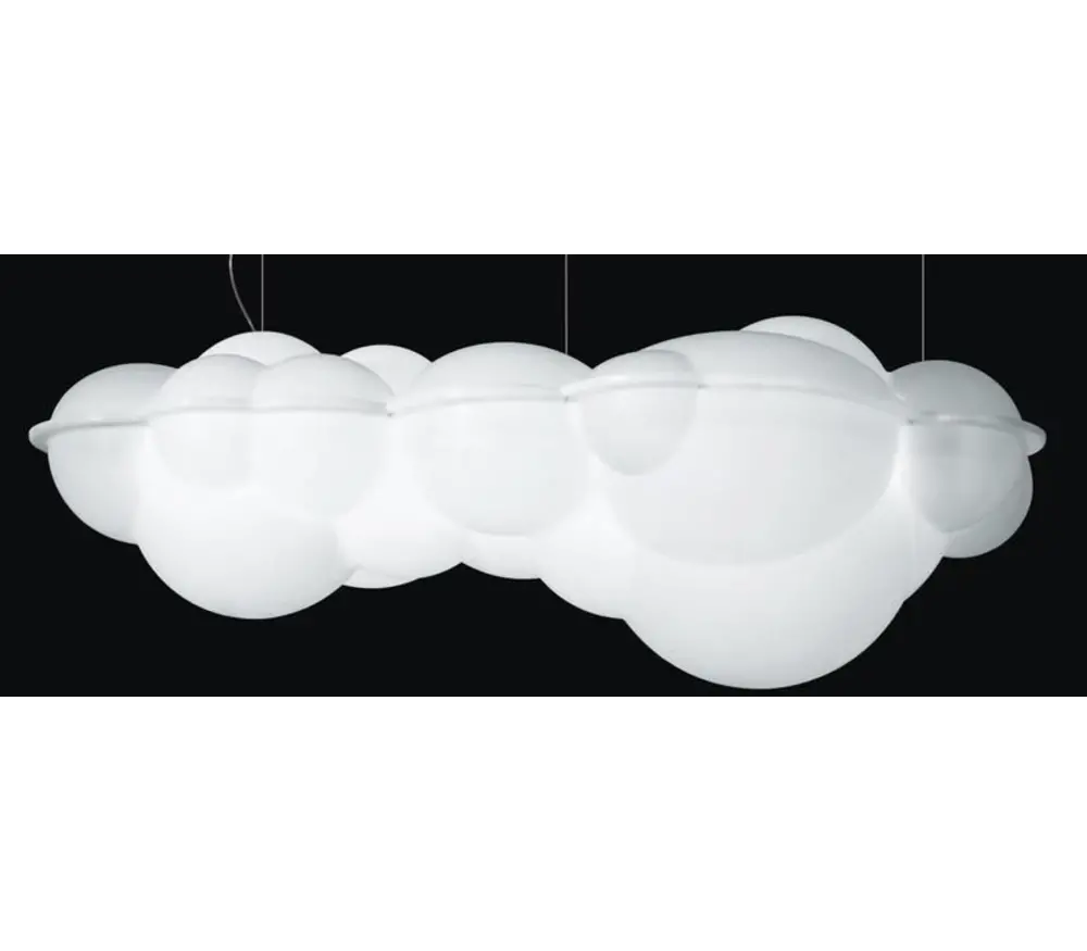Véritable classique du design, elle reste aujourd'hui pleinement dans la tendance des objets lumineux, avec un supplément d'âme et une touche vintage en plus ! Réalisée en polycarbonate opalin, cette extravagante suspension Nuvola en forme de nuage créera une ambiance onirique et emplie de douceur. Les belles dimensions de Nuvola (L 200 cm x P 100 cm x H 80 cm) offre une lumière fonctionnelle et non éblouissante. Nuvola est solidement maintenu au plafond par 4 câbles en acier (L max 300 cm).
