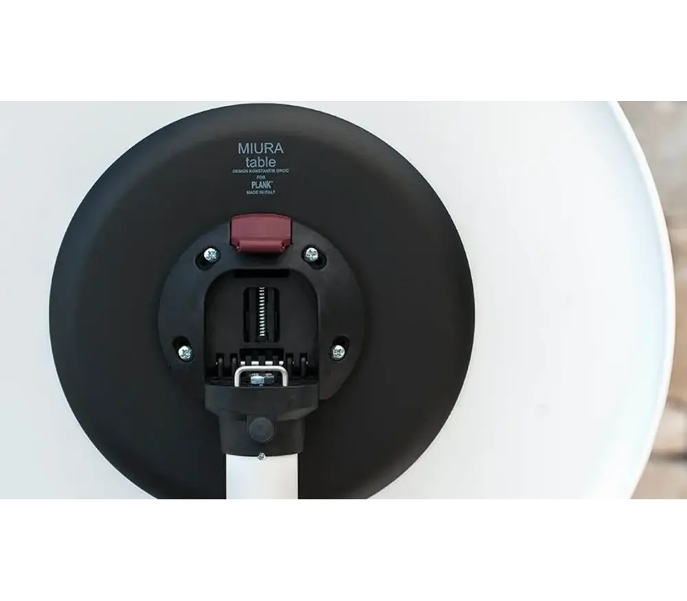 Dotée d’un piètement tripode en tube d’acier, la Miura offre une excellente stabilité. Son plateau rond en HPL FunderMax FH est rabattable, permettant de replier la table facilement afin d’emboîter plusieurs unités et d’optimiser le stockage. Cette fonctionnalité en fait une solution particulièrement adaptée aux espaces flexibles nécessitant des configurations modulables.