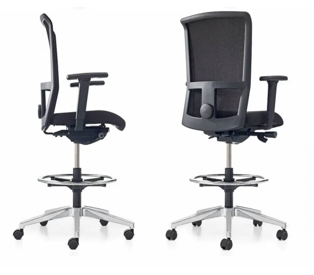 Les chaises hautes ergonomiques se trouvent principalement dans les laboratoires et les environnements industriels. Ils permettent une posture d'assise classique sur une surface de travail élevée, telle qu'un poste de travail assis-debout.