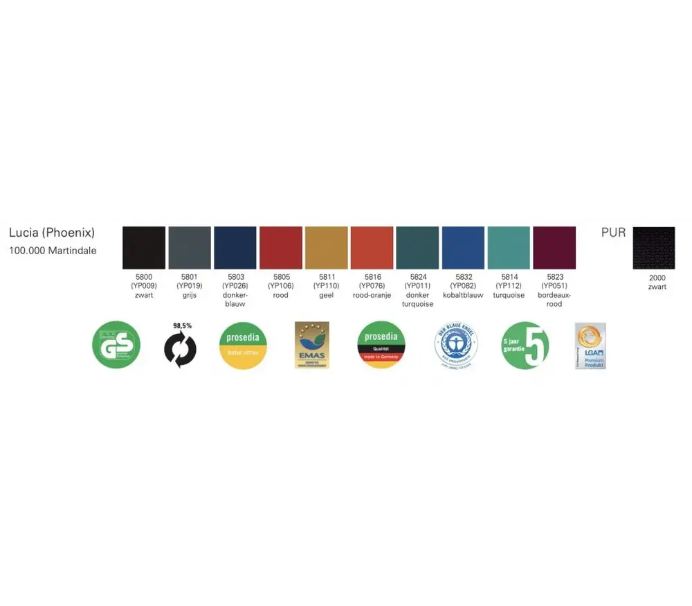 Une grande partie de la collection Prosedia possède le certificat Blue Angel. Ce label peut être comparé au label écologique néerlandais et est délivré par l'institut gouvernemental allemand RAL. Une marque obtient cette étiquette lorsque ses produits sont moins nocifs pour l'environnement que des produits similaires.
