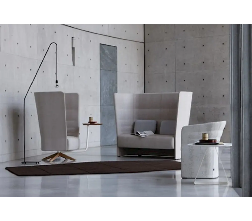 Grace à son dossier haut, il protège l'occupant sur lequel on peut se détendre et travailler ou communiquer confortablement. La Cell canapé insonorisants peut être fourni avec les des pieds en hêtre ou sans pieds. En outre, le canapé 2-places et la chaise avec dossier haut et bas peuvent également être commandé chez Brand New Office. Les canapés élevés ont été fabriqués à partir d'un tissu de haute qualité dont la composition est de 95% Virgin Wool, 5% Polyamide / Non metallic dyestuffs. Cell de Sitland a été conçu par par Fiorenzo Dorigo - Massimo Dorigo - Luca Garbet. En option vous pouvez commander une table ronde. Ces banques CELL peuvent être utilisés aussi bien dans secotors privé et public.