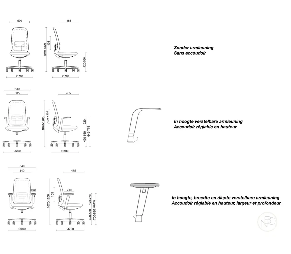 - Caractéristiques techniques: réglage de la hauteur d’assise activable à 360, assise avec système 3D intégré et breveté pour l’oscillation latérale, rembourrage de siège en mousse injectée ignifuge de classe 1IM, manette de verrouillage du mouvement 3D de l’assise, support dorsal avec système d’oscillation 3D intégré et breveté, manette de verrouillage de l’oscillation du dossier, support lombaire réglable en hauteur, structure dossier en polyamide