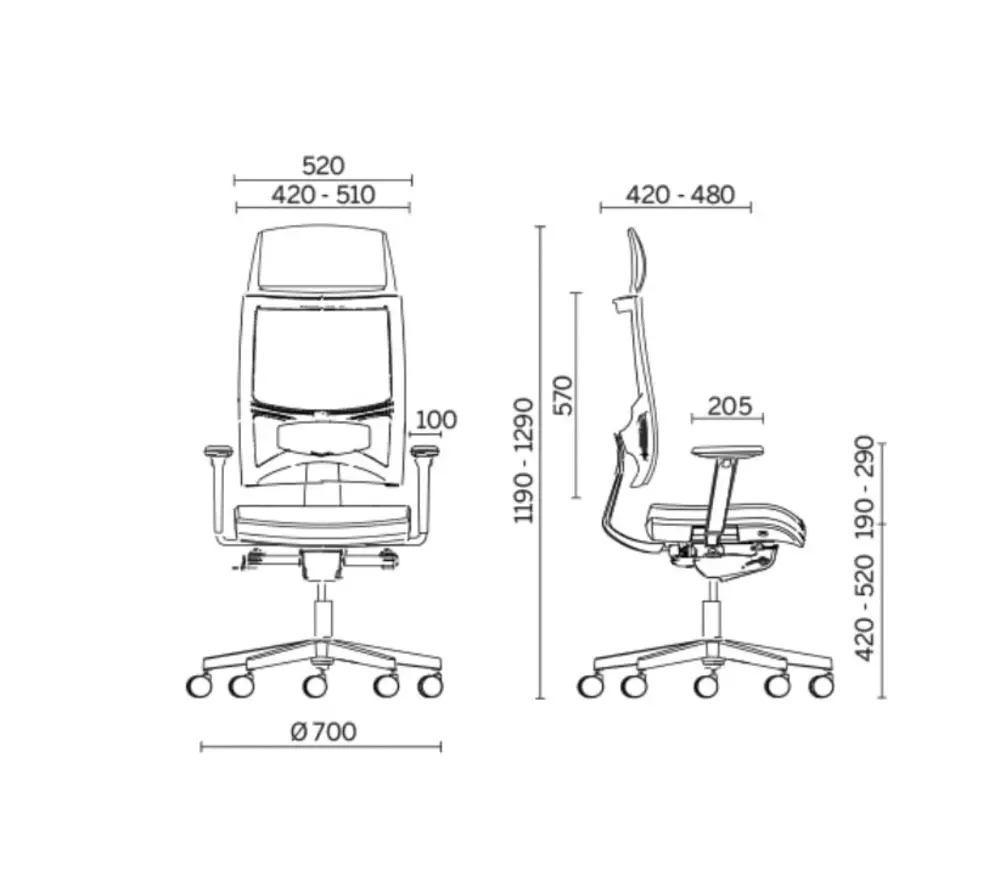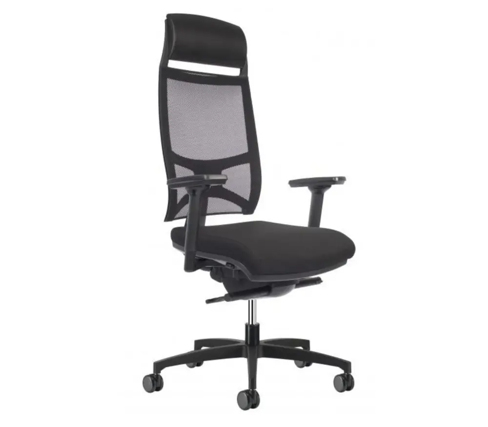 - Caractéristiques techniques: maille dossier, support de dossier flexible pour plus de confort (peint en noir), avec support lombaire réglable, assise en mousse polyuréthane injectée à froid (sans CFC), siège en tissu rembourré, avec accoudoirs, avec appui-tête, mécanique synchrone verrouillable en 5 positions, avec manivelle détachable sur le côté pour le réglage de la tension d'inclinaison, base en nylon renforcé noir