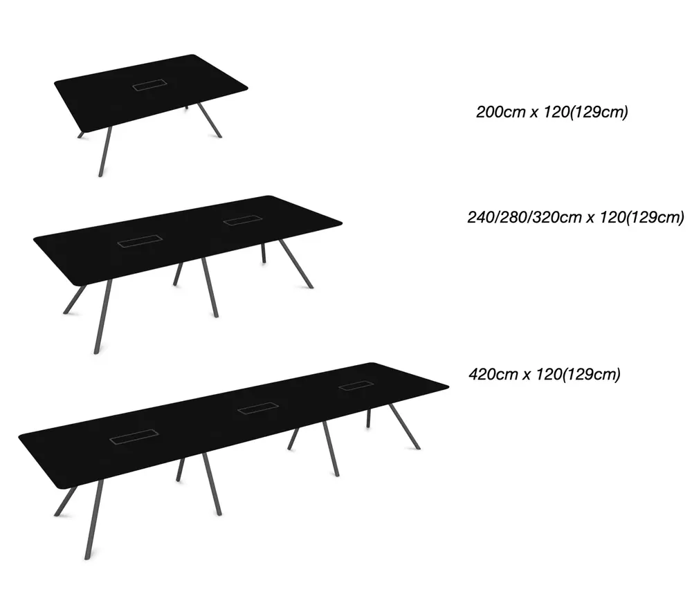 Les tables de conférence sont disponibles avec deux types de plateaux : rectangulaires et en forme de bateau. Avec ses extrémités arrondies et sa section centrale plus large, cette dernière facilite la communication et la collaboration entre les participants à la réunion. Cela donne à toutes les personnes assises autour de la table une ligne de vue dégagée et encourage le contact visuel, créant ainsi un environnement de réunion plus inclusif.
