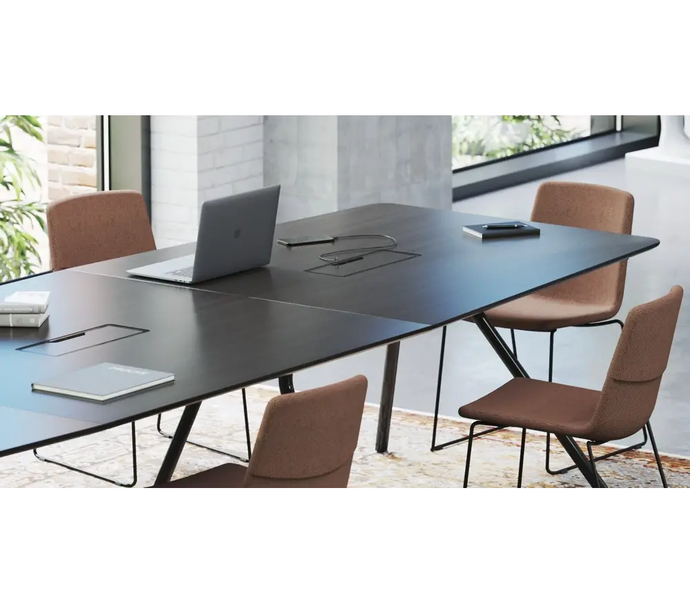 Des solutions d'alimentation bien pensées garantissent que vous disposez d'un endroit confortable pour travailler ou tenir des réunions. Des prises intégrées sont disponibles en option, les tables de conférence sont fournies avec des goulottes de câbles et des boîtiers pour les prises.