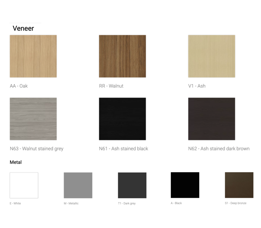 - Matériau: MDF 18 mm recouvert de bois de placage, structure divisée en métal soudé de 50x20 mm