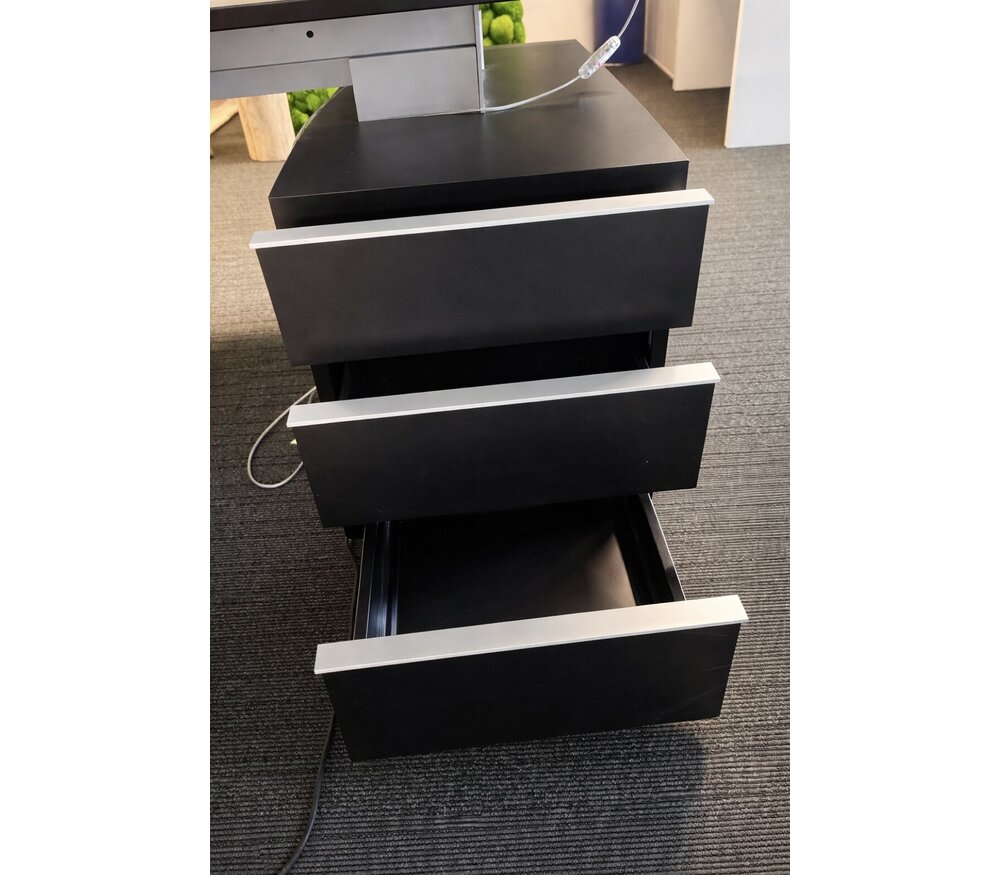 Le caisson intégré apporte un espace de rangement pratique et accessible. Sa configuration flexible permet d’adapter facilement le bureau à chaque environnement.