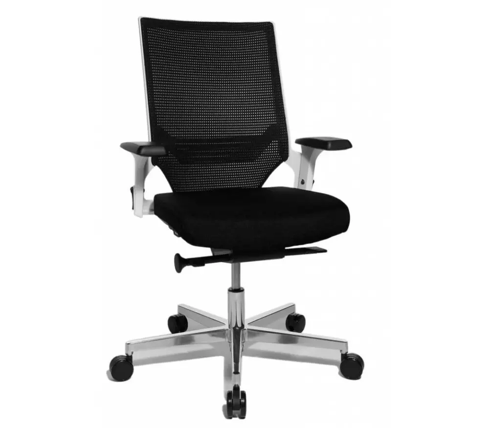- Caractéristiques techniques: un dossier en filet, mécanisme point synchrone avec inclinaison d'assise, un réglage progressif en hauteur par vérin à gaz, soutien lombaire, accoudoirs sont réglables en hauteur, revêtement Trevira
