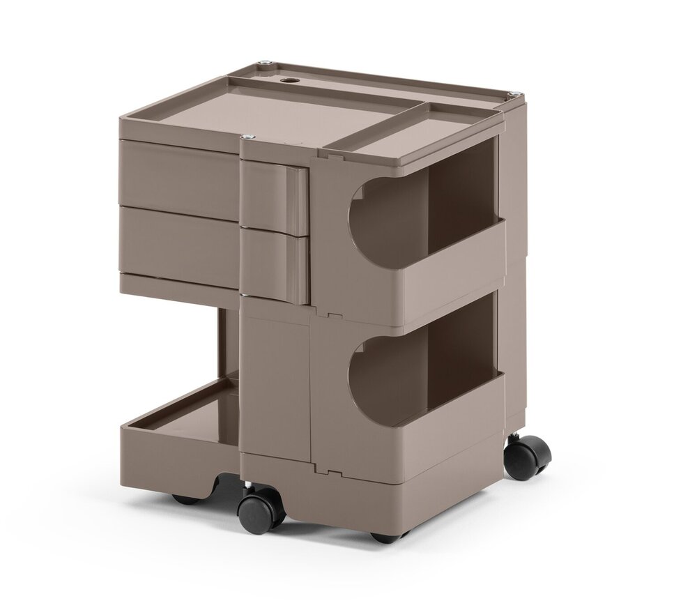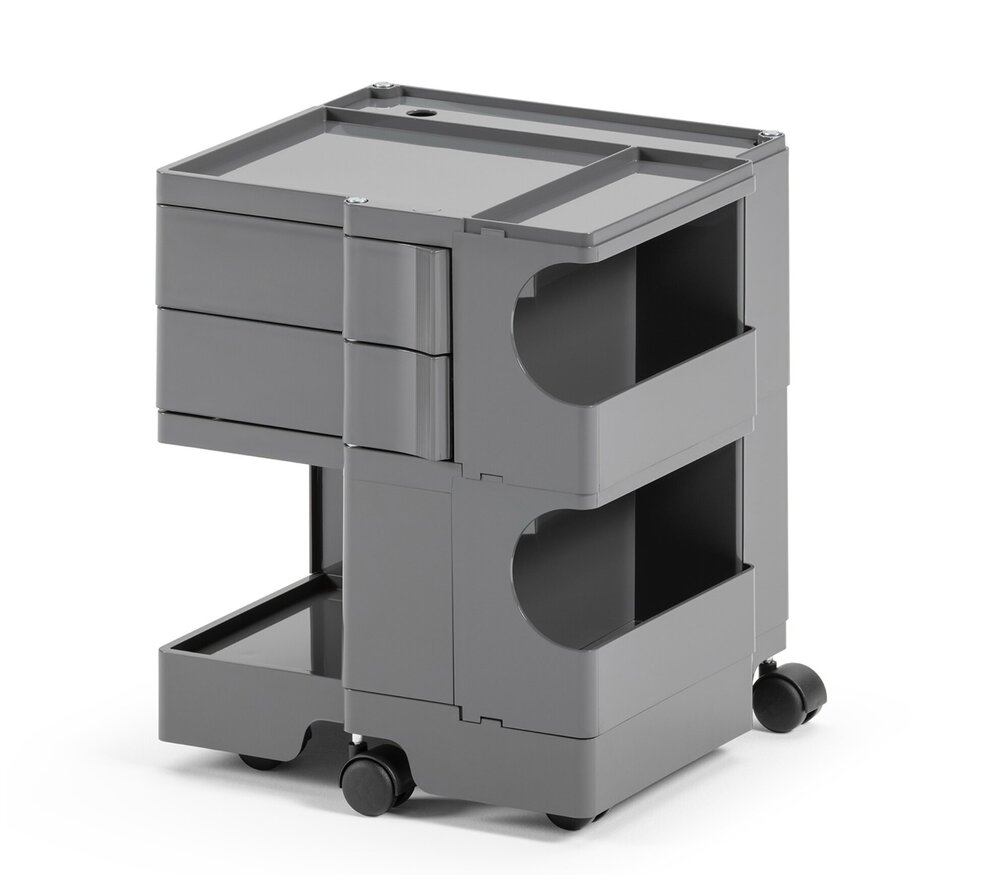 dit klassieke ontwerp van Joe Colombo staat in tal van musea en is niet meer weg te denken in kantoren, praktijken of zelfs badkamers. De Boby opbergtrolley van B-Line is dan ook multifunctioneel en veelzijdig met zijn draaibare lades en vele vakken gemaakt uit stevige ABS kunststof. Ze bieden veel ruimte en maakt het mogelijk al uw kantoorbenodigdheden op een elegante op te bergen. Deze multiwagen is een klassiek ontwerp van de alom bekende designer Joe Colombo. De opbergertrolley Boby op wielen met is speciaal ontworpen om de laden en compartimenten aan alle kanten snel te kunnen openen. Deze multiwagens bieden dan ook voldoende opbergruimte voor alle nadenkende kantoor accessoires en worden in verschillende modellen aangeboden: B13:31,5 cm hoog, B22: 52,5cm, B32-B35: 73,5 cm en B44: 94,5cm. In 1971 werd dit top ontwerp snel beloond met tal van designprijzen.
