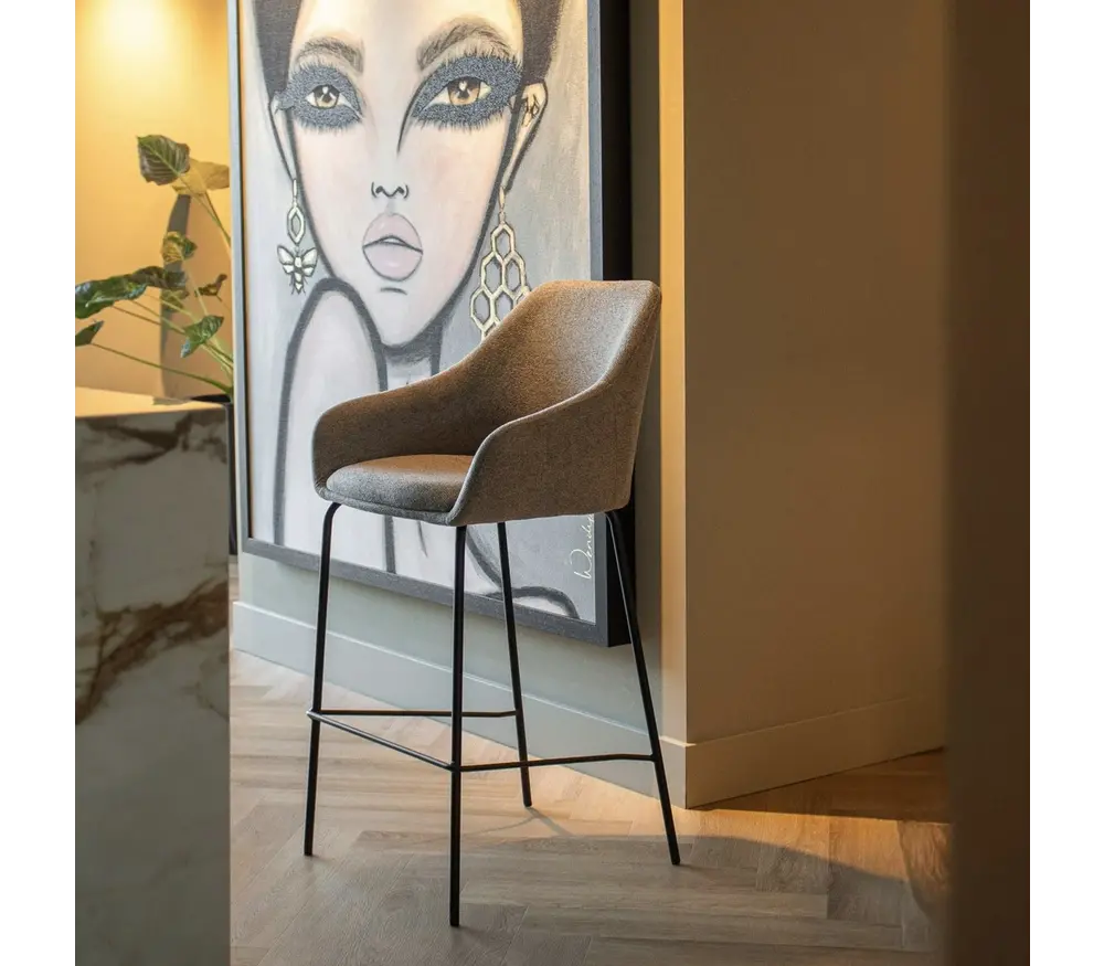 Ontdek Barkruk Suus – de perfecte combinatie van elegant design en heerlijk zitcomfort. Deze stijlvolle barkruk met armleuning is ideaal voor lange avonden aan de bar of het kookeiland. De comfortabele zitting is bekleed met een zachte, gemêleerde textuurstof die beschikbaar is in vier tijdloze kleuren. Dankzij het slanke, zwarte metalen onderstel past Suus moeiteloos in zowel moderne als industriële interieurs.