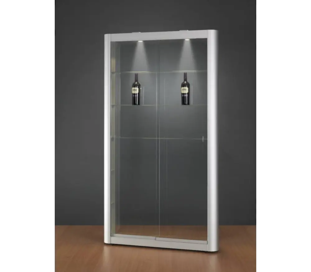 Basic Tech glazen vitrine laat alles zien! Goed zicht: de Basic glazen vitrine is voorzien van 2 schuifruiten 6mm met een slot, kogel gelagerd en voorzien van ingeslepen handgreepjes.