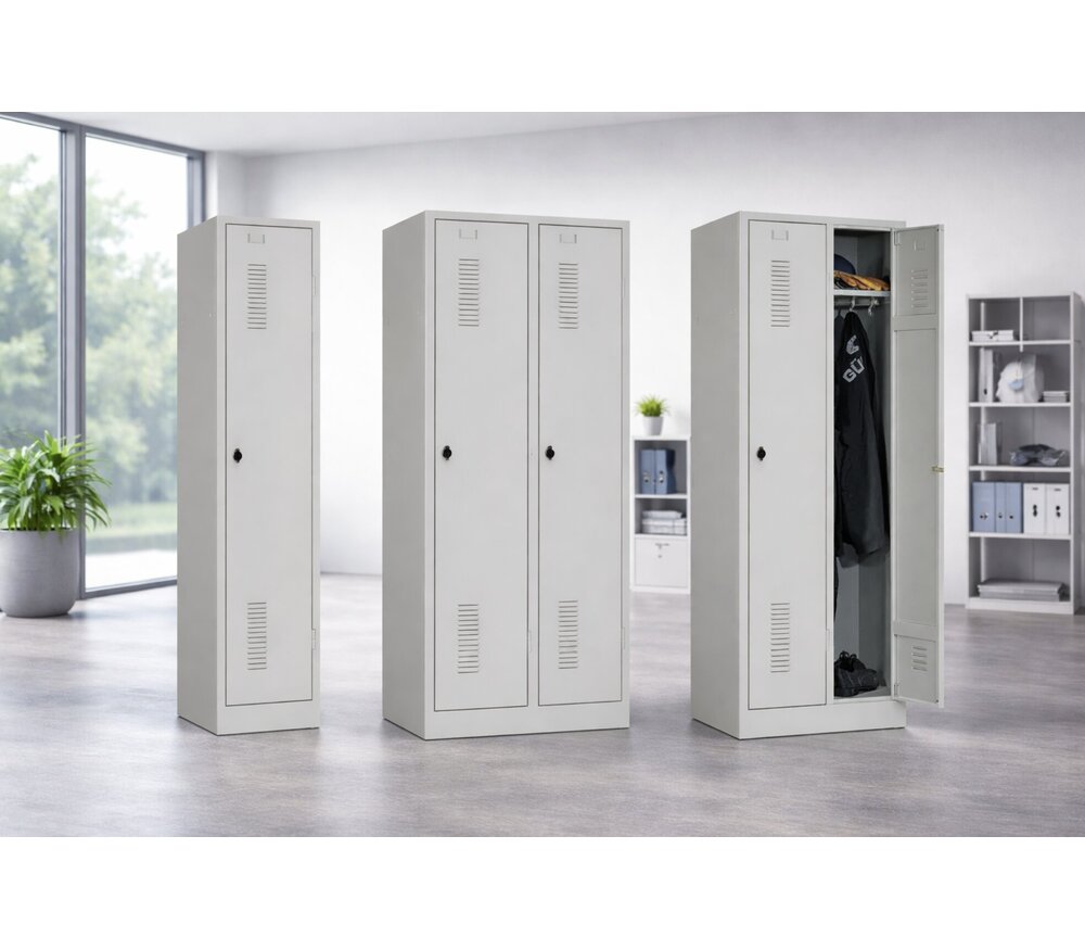 Verkrijgbaar met één, twee of drie deuren, biedt deze garderobekast flexibiliteit voor uiteenlopende toepassingen binnen kantoren, bedrijfsruimtes en lichte industriële omgevingen.