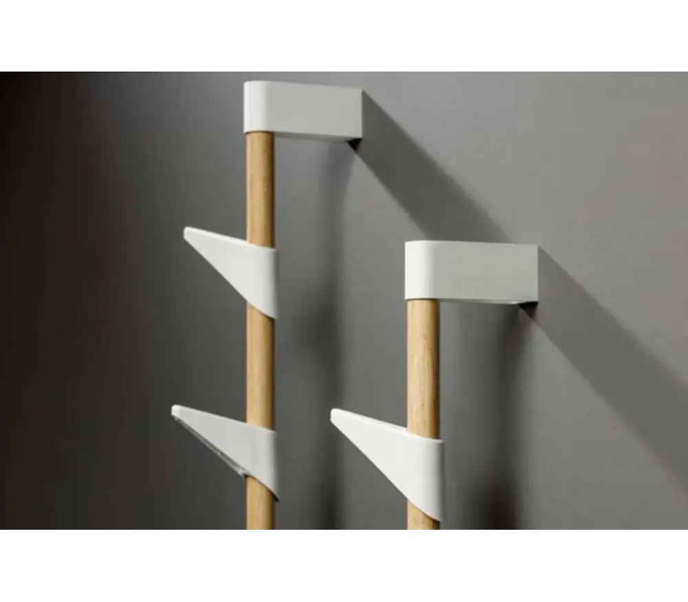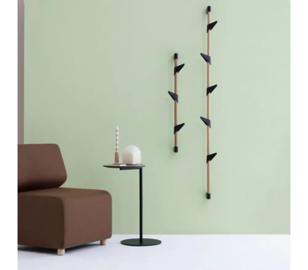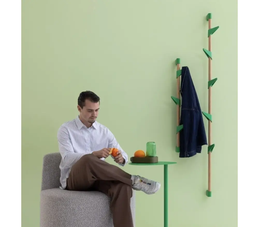De Cascando Bamboo Wall onderscheidt zich door zijn verticale vorm en modulaire karakter. De haken zijn eenvoudig verstelbaar via een slim systeem met een rubberen O-ring, waardoor flexibiliteit centraal staat.