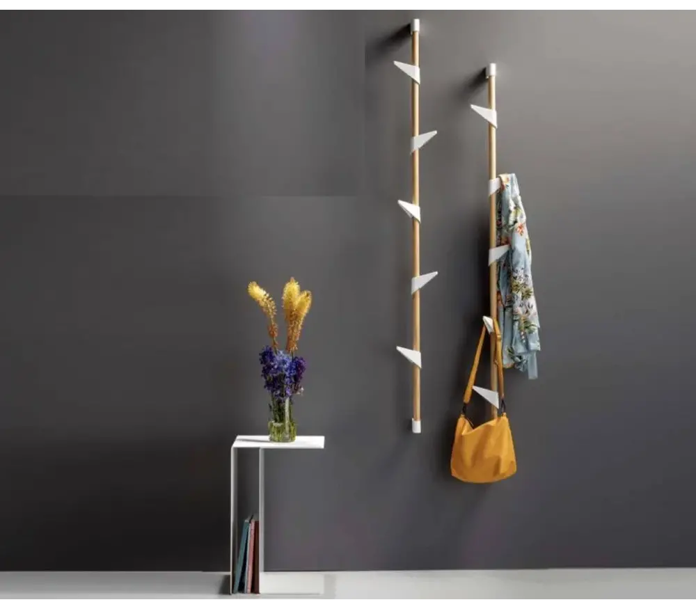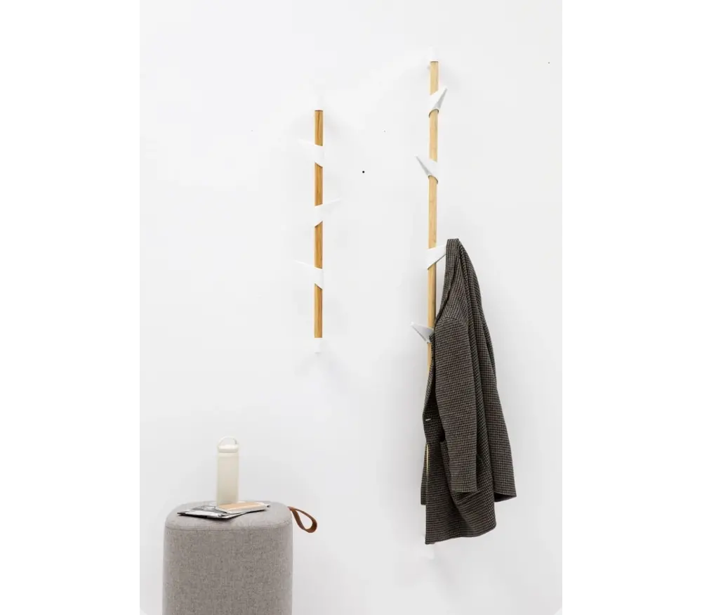 De Bamboo Wall kapstok combineert natuurlijke en industriële materialen tot een harmonieus geheel.