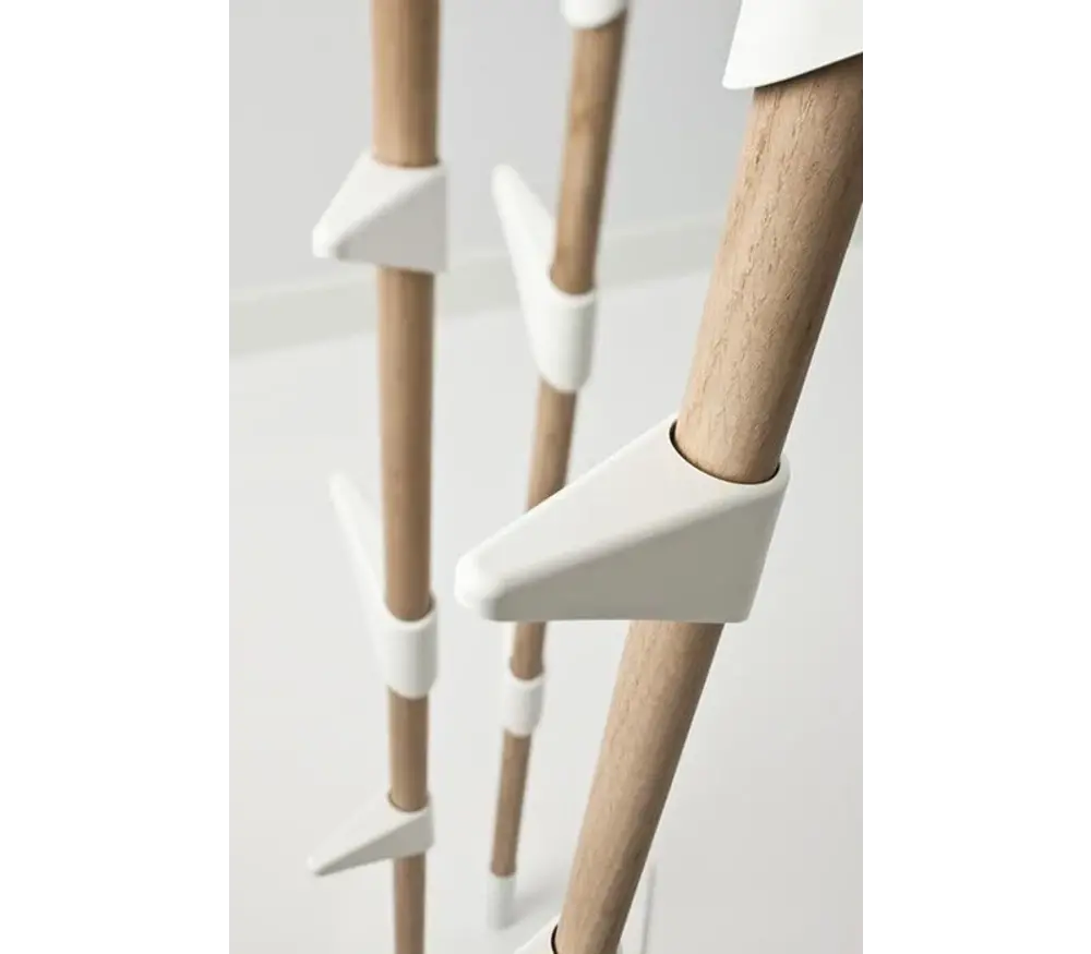 De combinatie van bamboe, staal en kunststof zorgt voor een warme en moderne uitstraling. Dankzij de verstelbare haken kan de kapstok eenvoudig worden aangepast aan verschillende soorten kleding en gebruikssituaties.