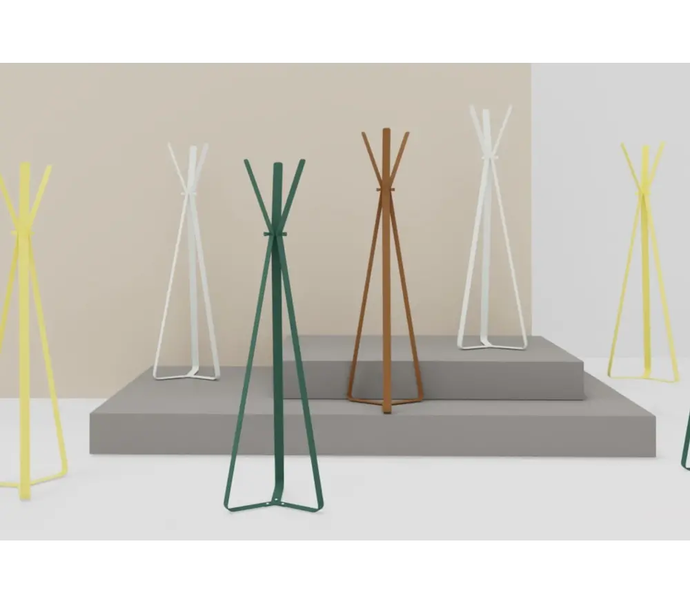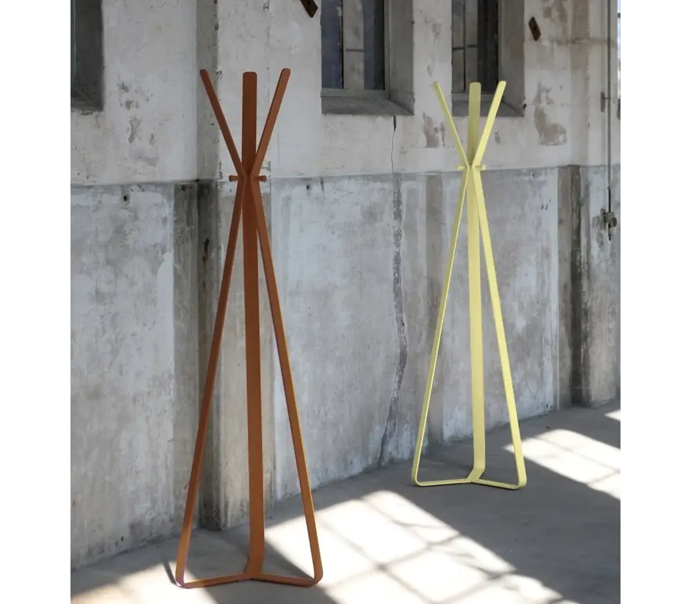 Cascando Bend staande kapstok bestaat uit gebogen metalen staanders die op fraaie wijze samenkomen.