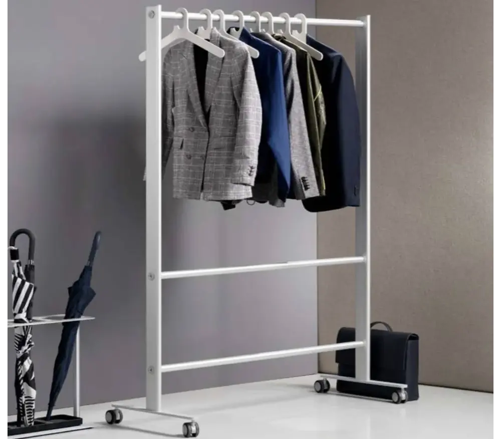 De horizontale balken bieden voldoende ruimte voor kledinghangers en optionele haken, waardoor de vestiaire geschikt is voor intensief gebruik.