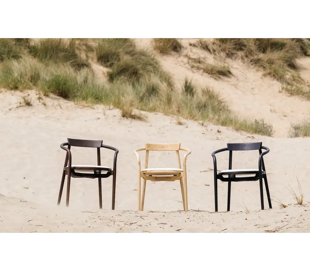 De stoel is vervaardigd uit massief essenhout, verkrijgbaar in Natural, Brown of Black Ash afwerking.
