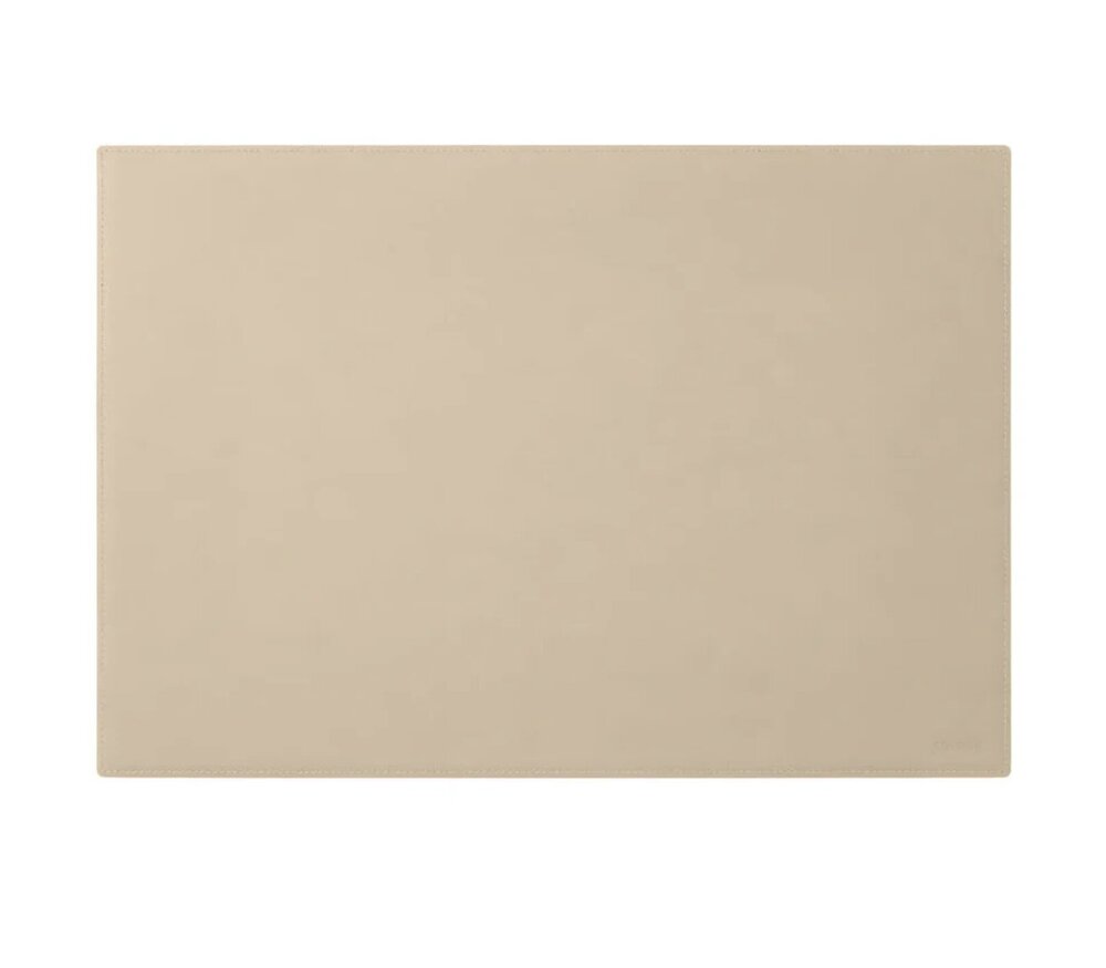 Het oppervlak is vervaardigd uit gerecycleerd leder, een slijtvast en onderhoudsvriendelijk materiaal met een luxueuze uitstraling. De interne kern bestaat uit stevig cellulosemateriaal, wat zorgt voor een stabiele en vlakke structuur. De onderzijde is afgewerkt met een krasbestendige en antislipstof die aangenaam aanvoelt en geschikt is voor verschillende ondergronden zoals hout, metaal en glas.