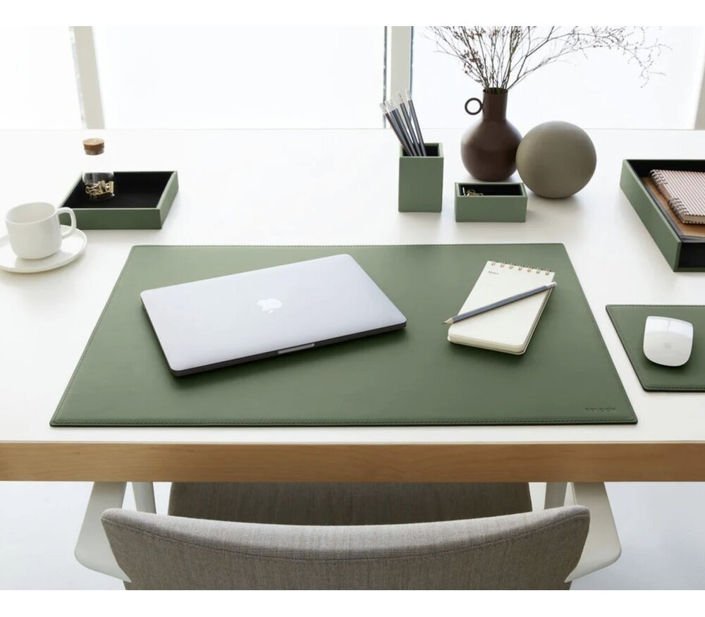 De Minerva set kan perfect gecombineerd worden met andere Eglooh bureauaccessoires zoals bureauonderleggers en muismatten, voor een volledig afgestemde en elegant ingerichte werkplek.