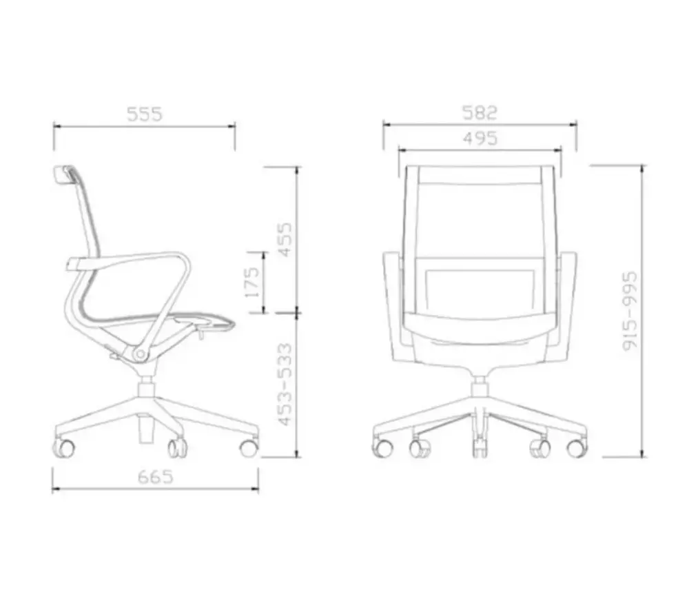 - Materiaal: Onderstel in zwart nylon, met 60 mm PU-zwenkwielen, zwarte stof en netbespanning