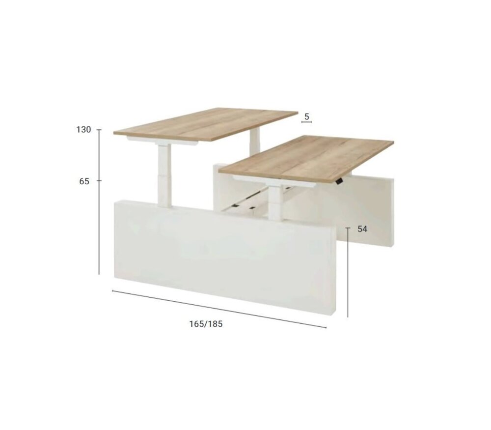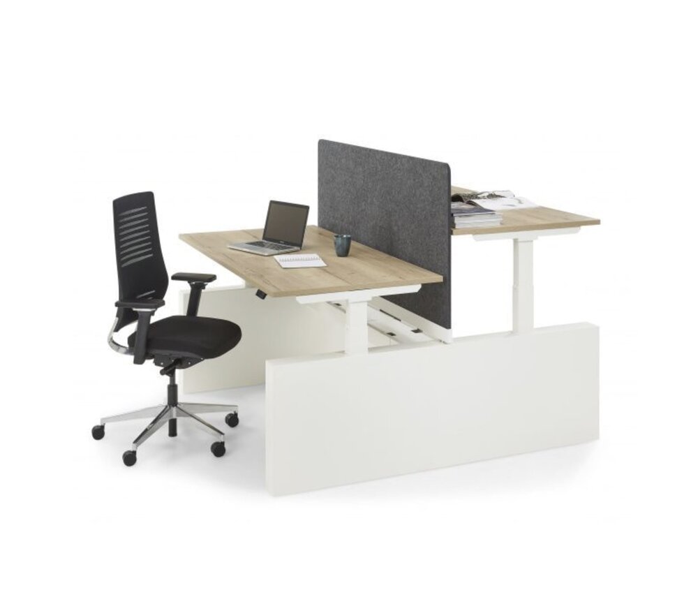 De Flex elektrisch zit-sta bureau-eiland voor 2 personen is een moderne en robuuste duo-werkplek die perfect aansluit bij de behoefte aan flexibel en ergonomisch werken. Dankzij het traversevrije wangenframe genieten gebruikers van optimale bewegingsvrijheid, terwijl de 10 centimeter dikke metalen wangen zorgen voor een krachtige en representatieve uitstraling in iedere kantooromgeving.