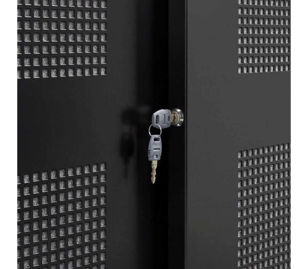 De kast is opgebouwd uit een robuust metalen frame, gecombineerd met hoogwaardige akoestische viltelementen. Het geavanceerde schuifdeursysteem garandeert een soepele en fluisterstille werking, ook bij intensief dagelijks gebruik.