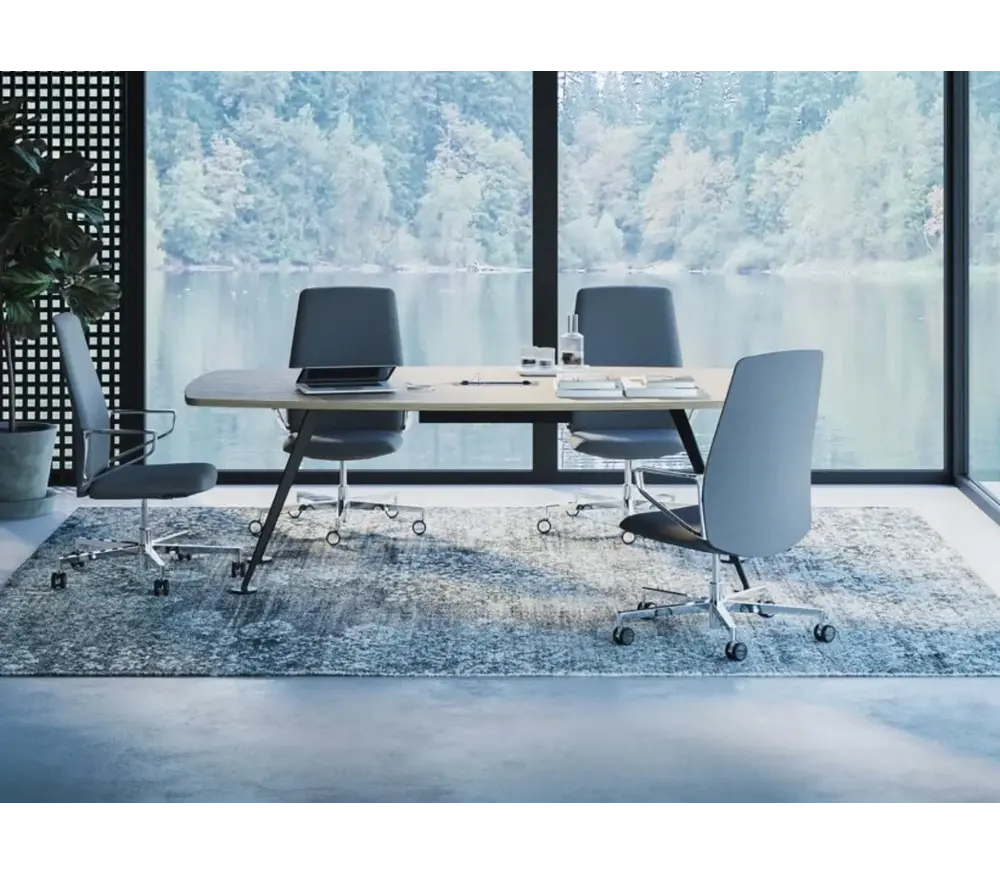 De Spike-lijn omvat niet alleen vergadertafels, maar ook directiebureaus en salontafels, ideaal voor het inrichten van een stijlvol en representatief directiekantoor.