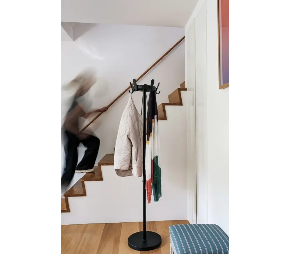De kapstokken uit de Krok familie blinken uit in eenvoud. Ze werden ontworpen door Mia Lagerman & Ehlén Johansson en hebben het design teruggebracht naar de essentie. De Krok G+ is een gestroomlijnde garderobestandaard met vijf dubbele haken van kunststof. De kroon en voet is van gegoten aluminium en zijn afgewerkt met structuurlak. De Krok G+ heeft verder ook een parapluhouder dat verkrijgbaar is in zeven verschillende kleuren.