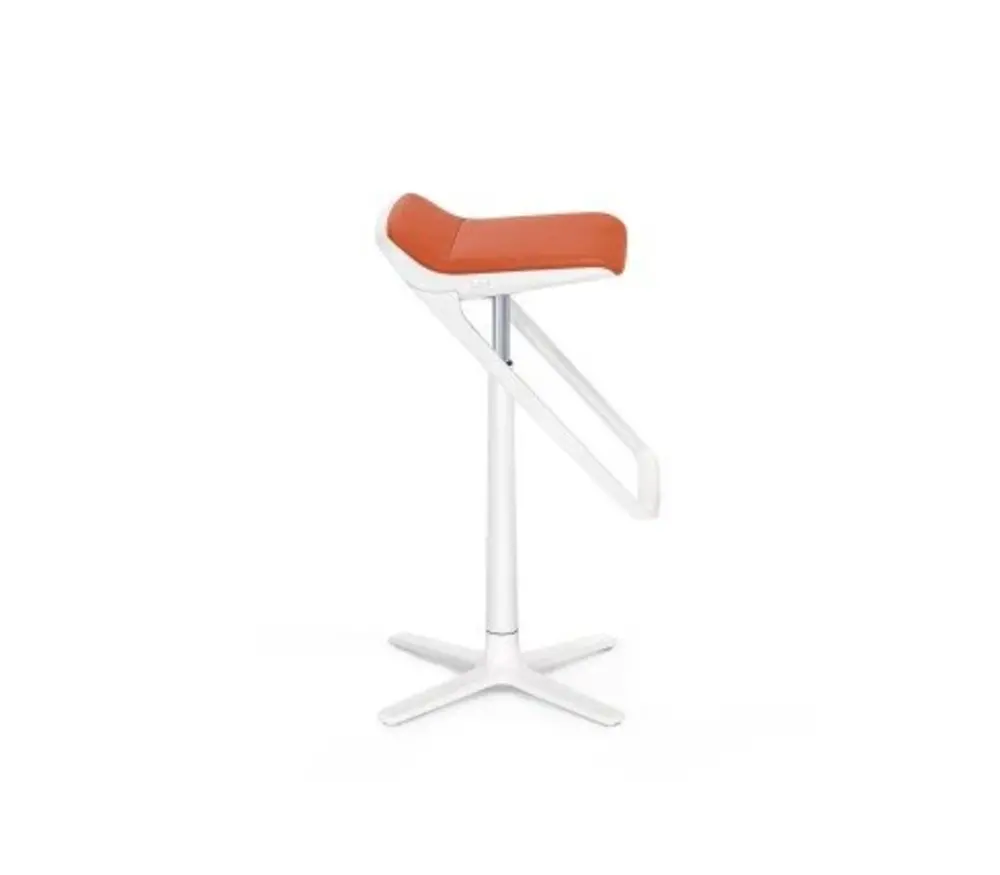De sta-kruk Kinetic met voetsteun kan draaien en in hoogte worden versteld, hij is gemaakt van aluminium(wit/zwart of zilver) en heeft een Ascot lederen bekleding.