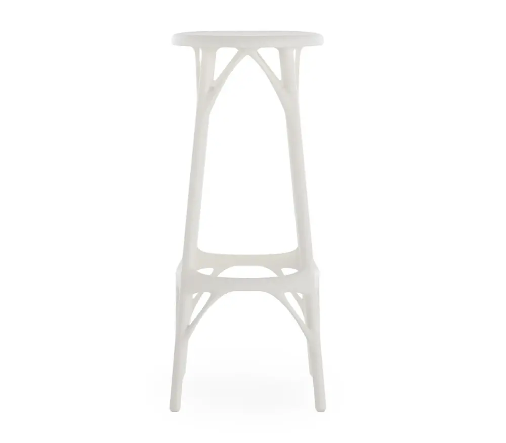 Welkom in de moderne tijd - de A.I. barkruk van Kartell is de eerste designstoel die is ontworpen door kunstmatige intelligentie. Het is gebaseerd op een algoritme dat de basiskenmerken van de ontwerpbenadering van Philippe Starck en Kartell combineert. Het resultaat is een stoel met een comfortabele zitting die tegelijkertijd voldoet aan structurele eisen en esthetische eisen. De toegevoegde waarde van het gebruik van kunstmatige intelligentie is dat het niet het creatieve deel van de ontwerper vervangt, maar het prototyping- en planningsproces versnelt en de time-to-market verkort.