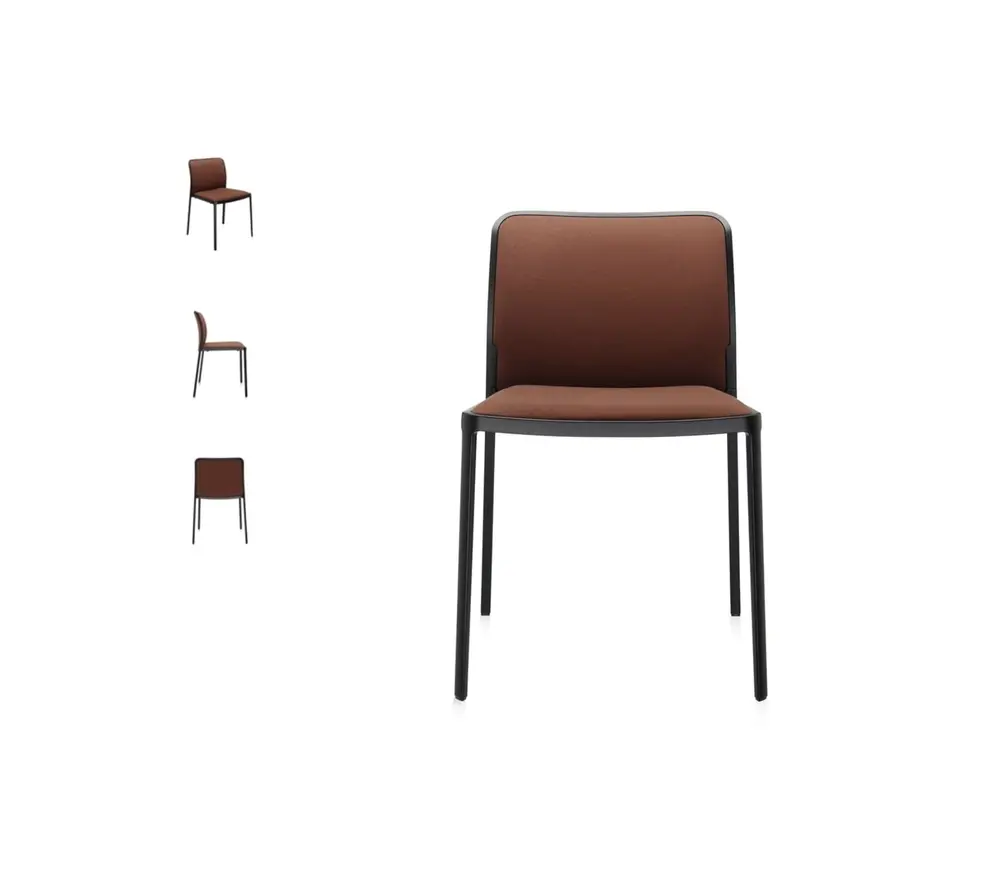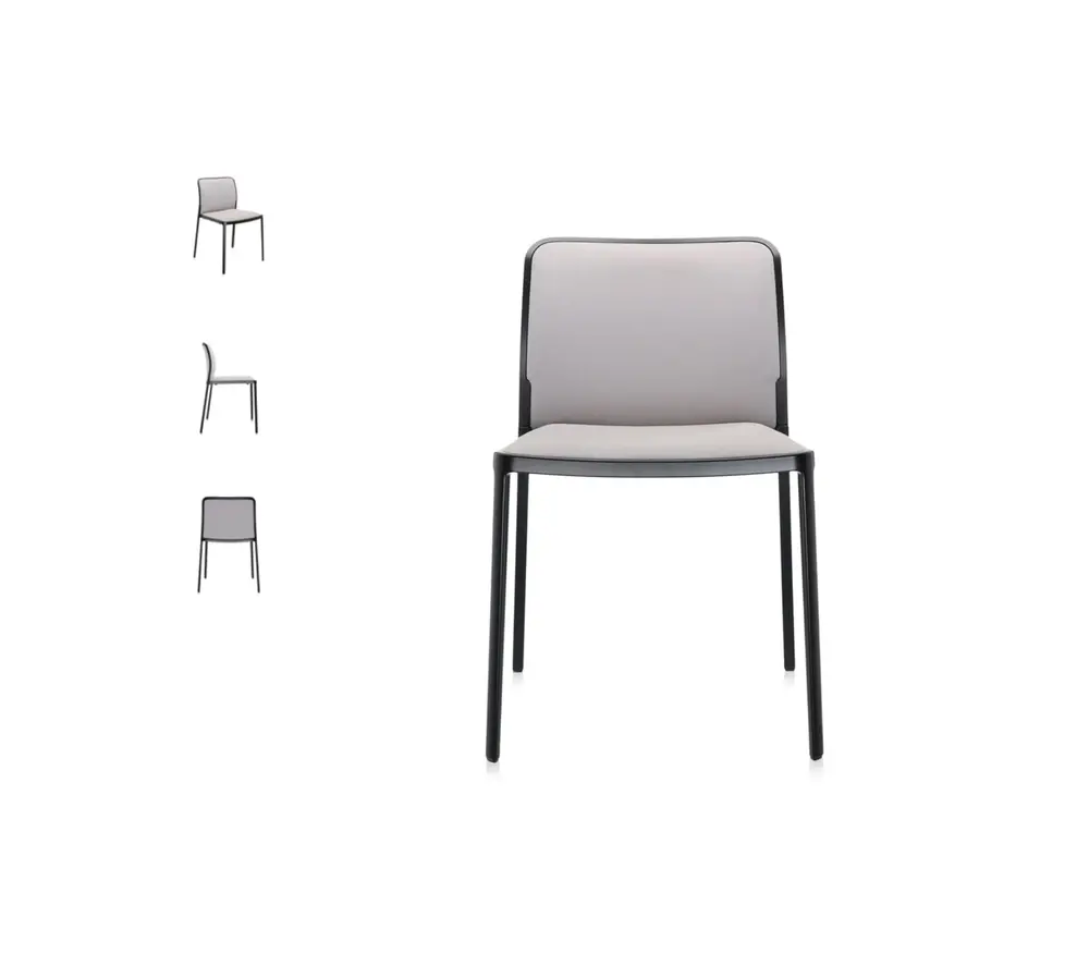 Het behoort tot een eclectische en multifunctionele stoelenfamilie dat voor zowel binnen als buiten te gebruiken is, in kantoor, thuis, publieke of horecaruimtes. De strakke, eenvoudige lijn van de stoel is te danken aan een speciaal spuitgietprocédé waardoor het frame uit slechts twee aluminium elementen bestaat zonder zichtbare lassen. Audrey Soft is verkrijgbaar met een frame in gepolijst, witgelakt of zwartgelakt aluminium, met of zonder armleuningen. Voor de bekleding is er keuze uit drie soorten stoffen op aanvraag (Kvadrat, Trevira of Lycra) in verschillende kleuren. Alle Audrey-modellen delen hetzelfde DNA maar hebben lichte verschillen waardoor ze geschikt zijn voor gebruik op diverse plaatsen.