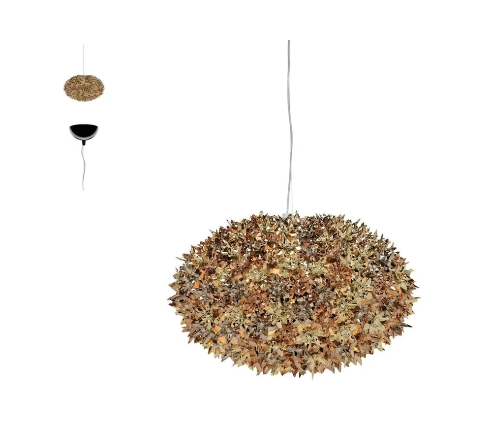 De Bloom lamp bloeit in een sprankelend en weelderige cascade van bloemen die kristal oproept. Bloom Kartell bestaat uit een buisvormige skeletstructuur met daarop de kleine corolla bloemen van doorzichtig polycarbonaat. De lamp werd ambachtelijk geproduceerd en daardoor komt de stilistiche complexiteit van de lamp tot uiting. De kristallen bloemblaadjes worden door de lichtbundel gereflecteerd en geven prachtige reflecties. Bloom is een nieuwe manier van ontwerpen van traditionele armaturen. De Kartell Bloom hanglamp is verkrijgbaar in verschillende afmetingen, maar deze hanglamp heeft de volgende afmetingen: 80-240h x 53b cm. De hanglamp overstijgt eigenlijk het begrip van een gewone 'lamp'. Met al zijn bloemetjes lijkt deze hanglamp meer op een kunstwerk dan op een lichtsculptuur. Deze Bloom hanglamp is een aanrader om er het voorjaar mee in huis te halen, welk seizoen het ook maar is. Het voordeel van deze lamp is dat de bloemetjes het hele jaar in bloei blijven!