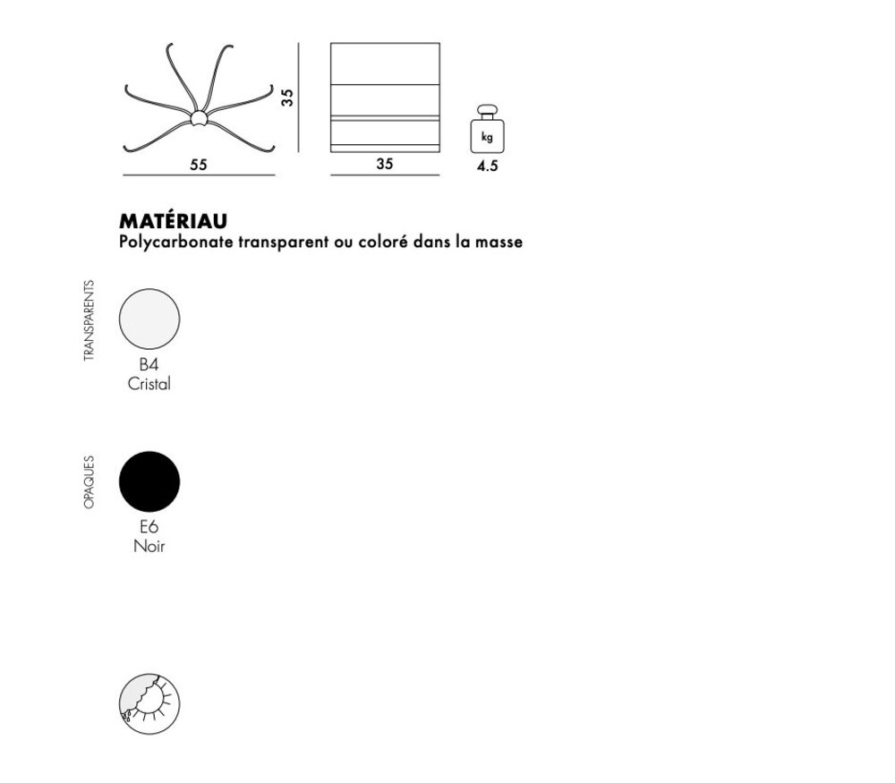- Kleur transparant: kristal Ondoorzichtig: zwart