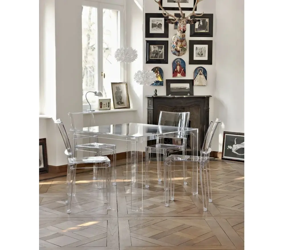 De Kartell Invisible Table van Kartell heeft de eenvoudigste vorm en de zuiverste lijn die men voor een tafel kan bedenken.