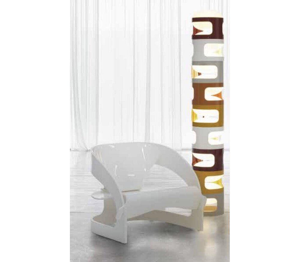 Kartell bracht een hommage aan Joe Colombo door de fauteuil in PMMA te vervaardigen en er zo een toets van de hedendaagse design aan te geven. Dit authentieke designsymbool van de jaren 60 is vandaag erg gegeerd op veilingen. De fauteuil is ook beroemd omdat hij het enige stuk van Kartell is dat volledig in hout is gemaakt. Dankzij de hedendaagse technologie is het mogelijk om hetzelfde product te realiseren in PMMA, waarbij gebruik wordt gemaakt van een industrieel proces om de gebogen en golvendevorm te creëren. De stoel werd geproduceerd in een genummerde reeks en is verkrijgbaar in drie kleuren die de kenmerkende vorm accentueren. Deze fauteuil Joe Colombo is beschikbaar in transparant of zwart en wit ondoorzichtig.
