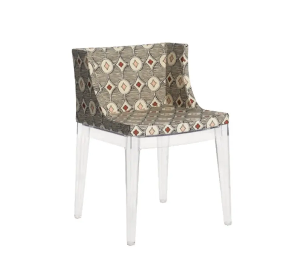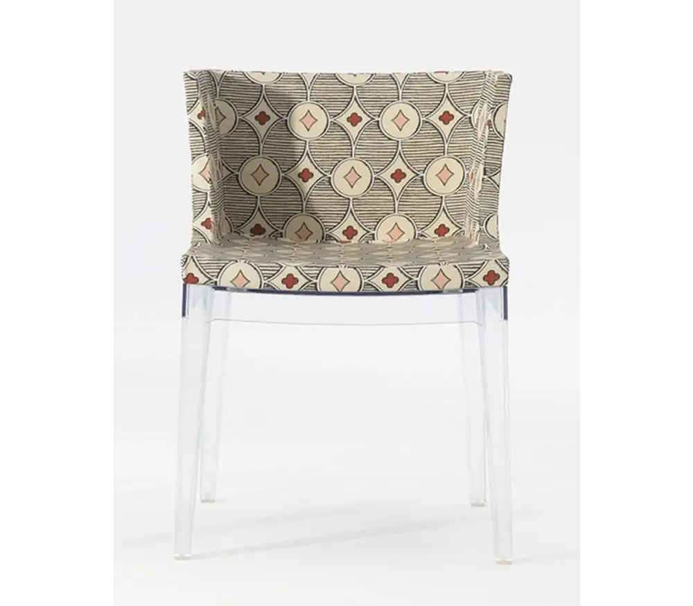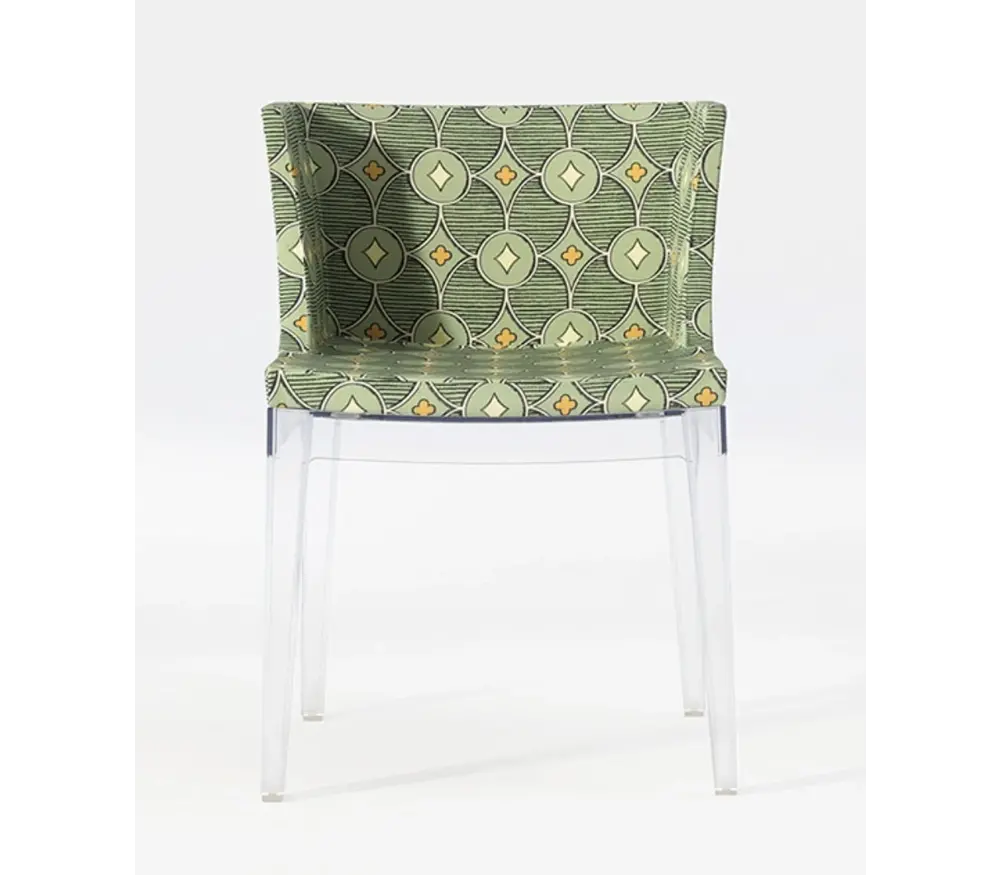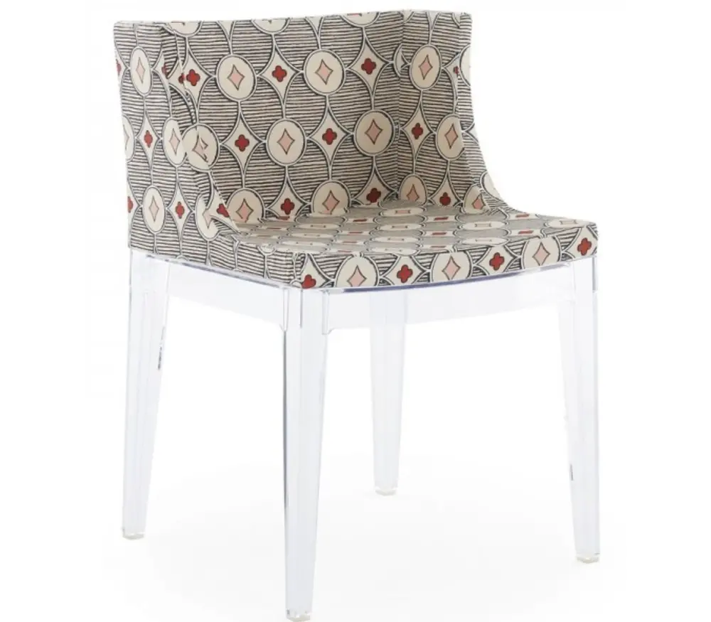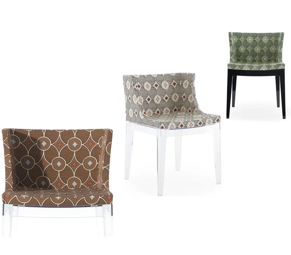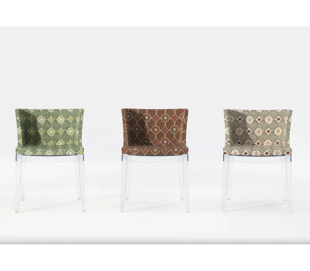 De Mademoiselle stoel is beschikbaar in drie verschillende versies en de haute couture elegantie van de fauteuil straalt klasse uit. Mademoiselle, de designstoel die het meest “à la mode” is, wordt aangekleed door prestigieuze “made in Italy” modehuizen die een bijzondere band hebben met Kartell. Mademoiselle is chic en vrolijk en is verkrijgbaar met de structuur in transparant of zwart polycarbonaat. De structuur wordt vastgemaakt aan de brede en comfortabele zitting dankzij vier laspunten, waardoor een stevige en tegelijkertijd elastische combinatie gecreëerd wordt. Het design is rechtlijnig en harmonieus. De Mademoiselle stoel van Kartell is beschikbaar met een transparante of zwarte structuur. Deze stoelen zijn beschikbaar in wit, zwart of pied-de-poule patern.