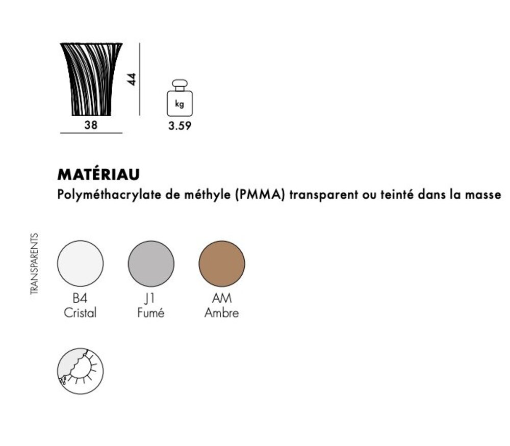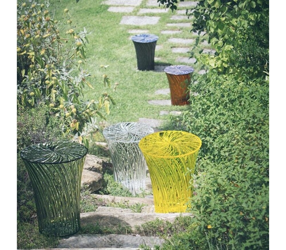 Ze is even opvallend als een flitsende en prikkelende lichtstraal. Het bijzondere PMMA plastic maakt de collectie geschikt voor zowel binnen als buiten en levert een prachtig eindresultaat op! Deze twee nieuwe juweeltjes voor in huis, kantoor of in uw winkelruimte, schitteren als echte edelstenen! Deze zitkruk en lage tafel zijn beschikbaar in 5 verschillende kleuren, ook de nieuwe kleur amber is reeds beschikbaar. Deze nieuw kleur werd op de designbeurs van Milaan voorgesteld.