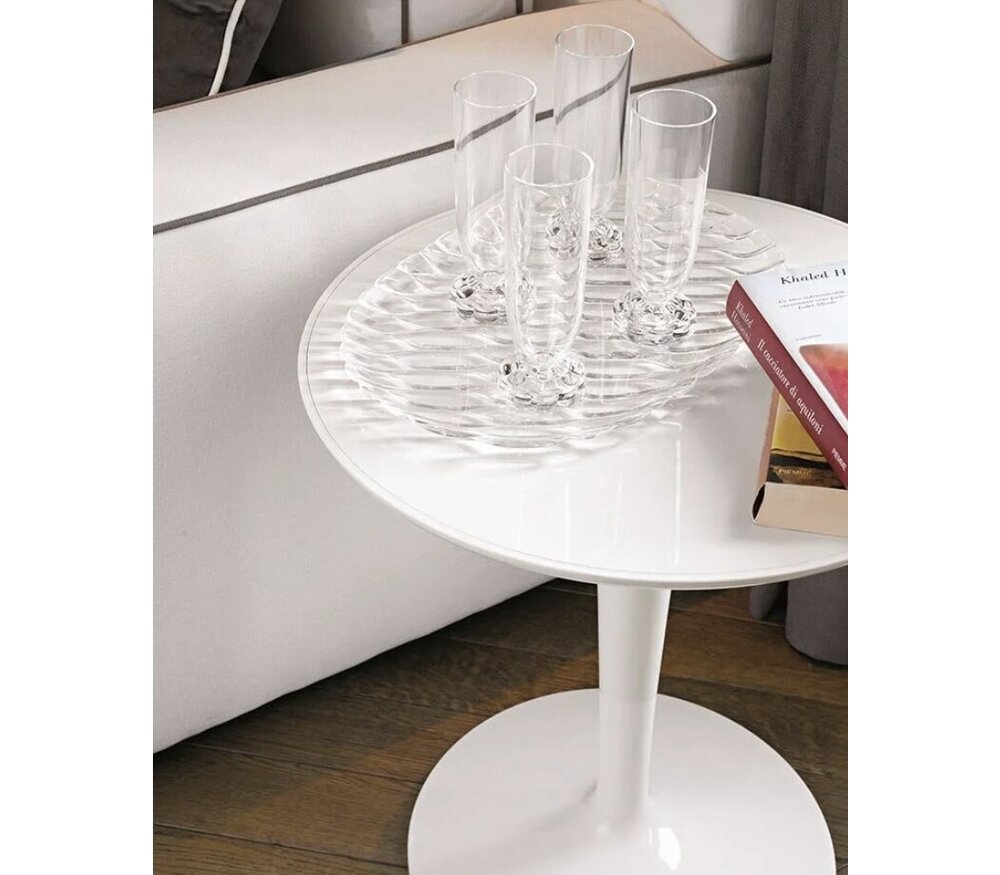 De Kartell TipTop bijzettafel staat voor glanzend, sierlijk, design en geschikt voor binnen.