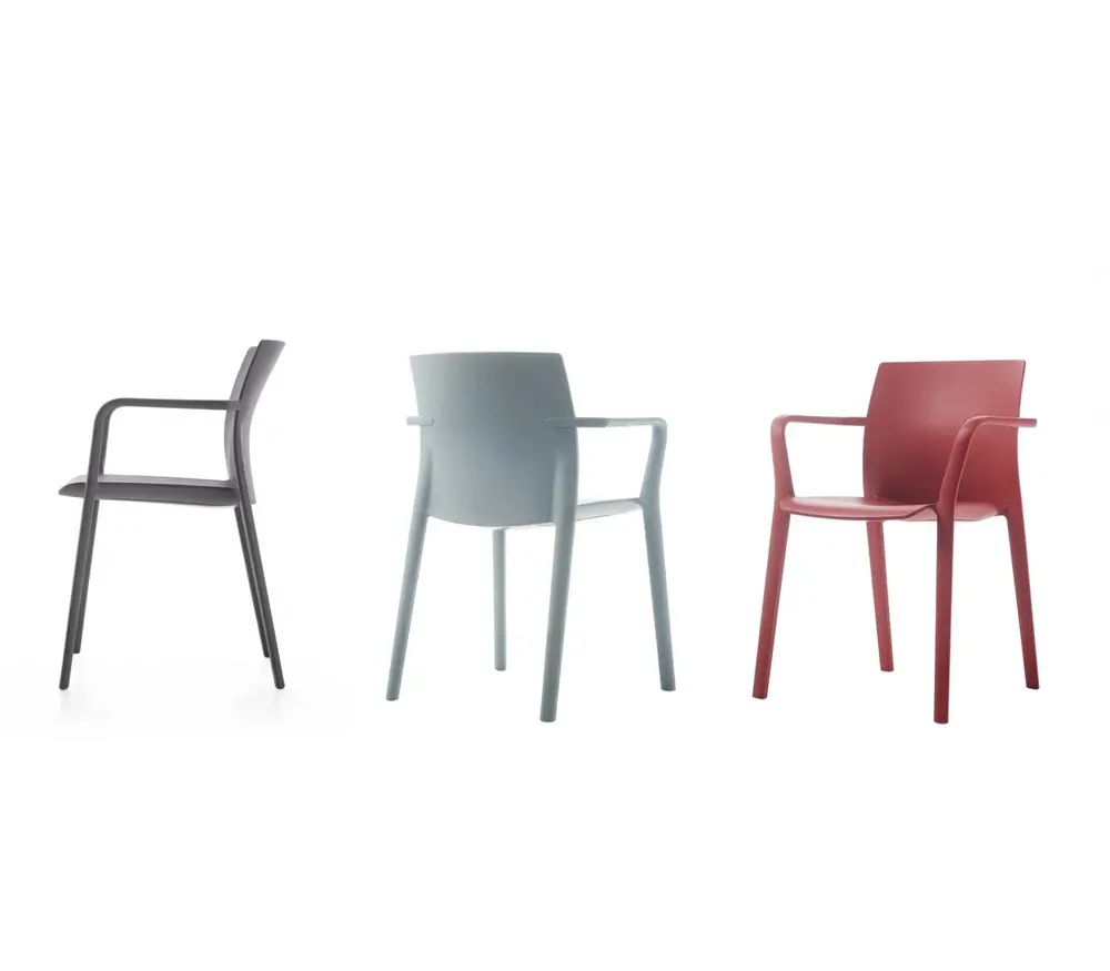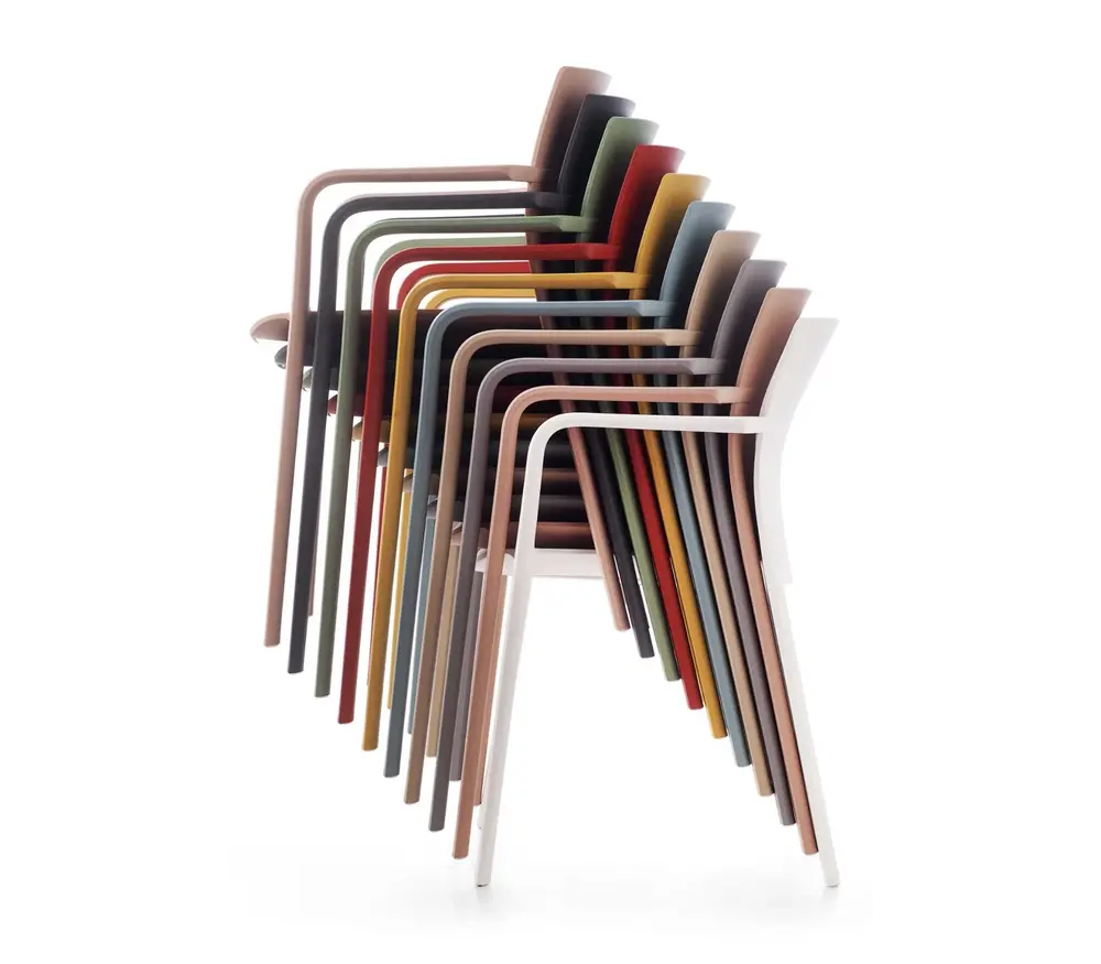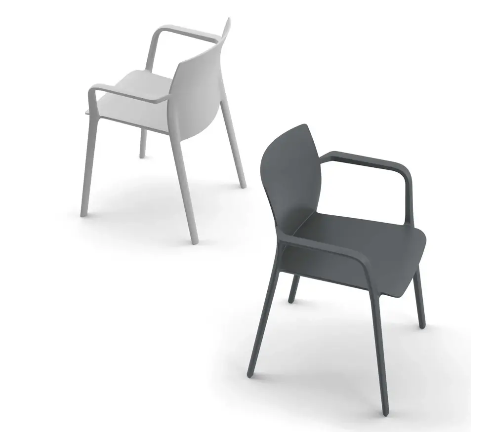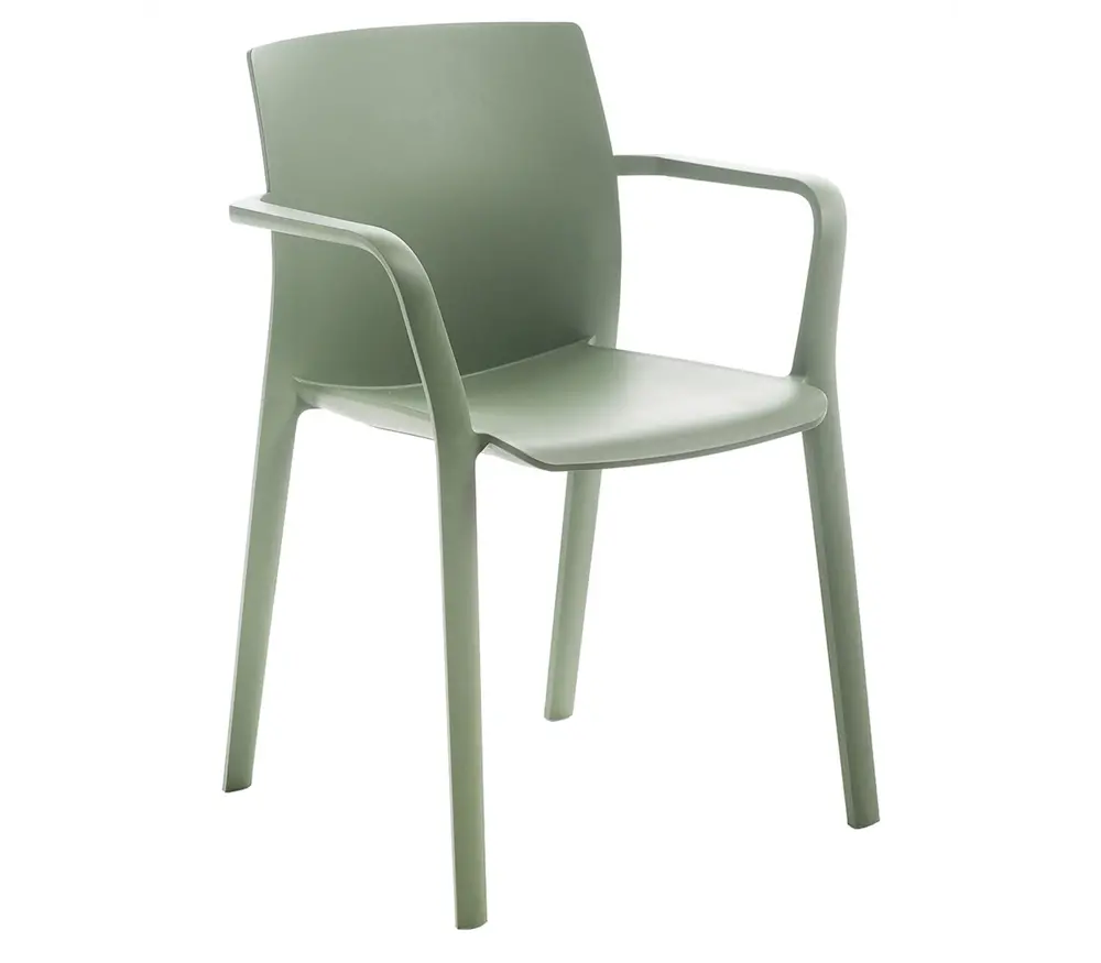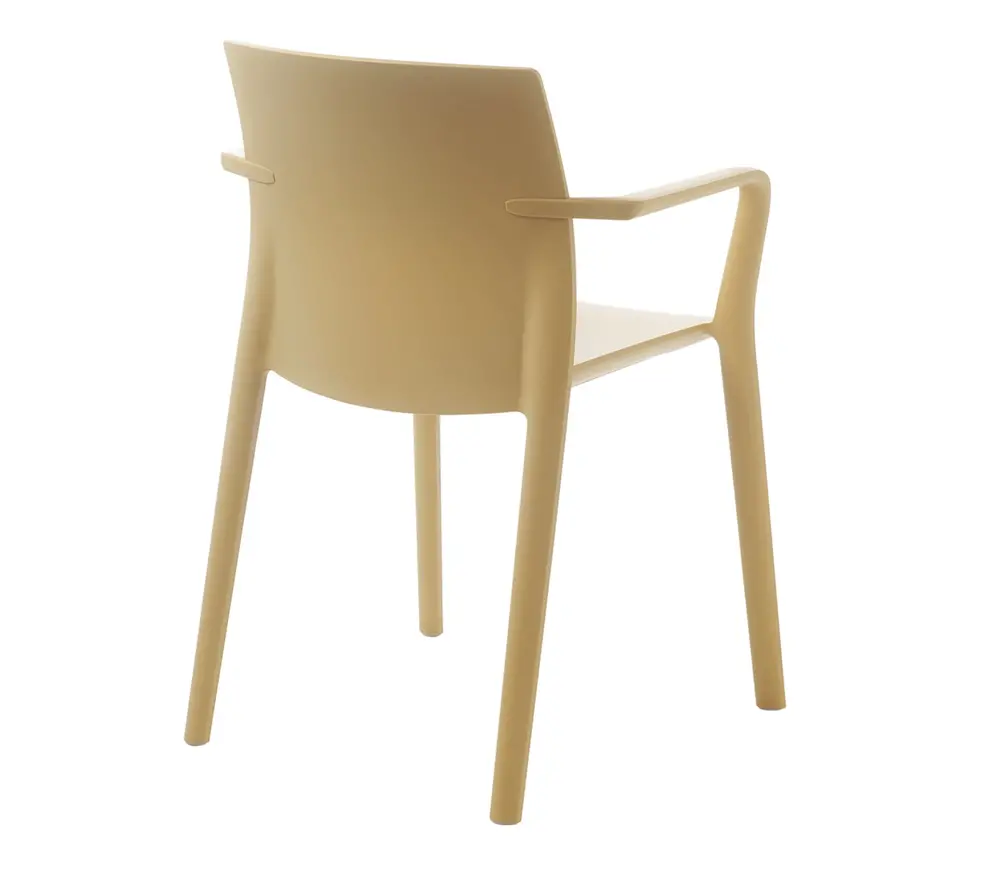 De Kastel Klia stoel met armleuning is een stapelbare stoel dat gemaakt is uit polypropyleen versterkt met glasvezel.