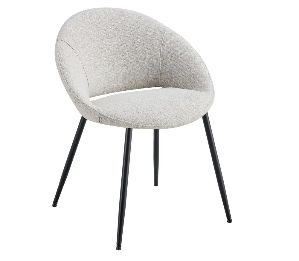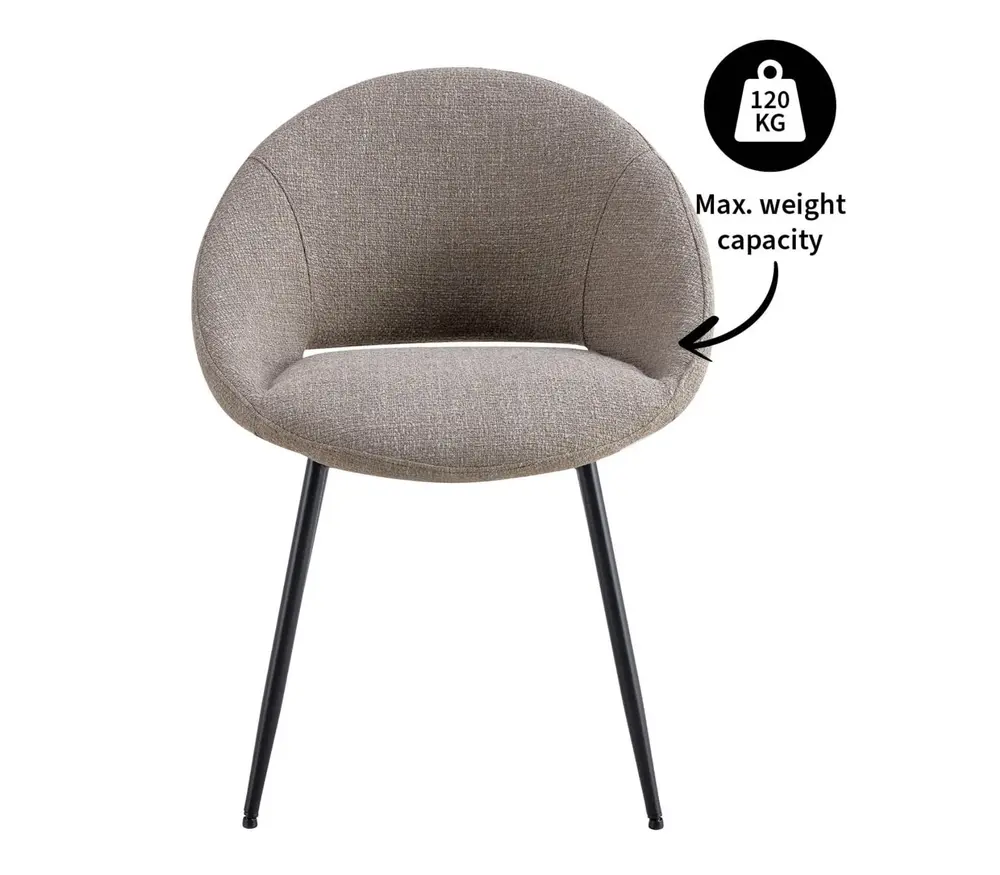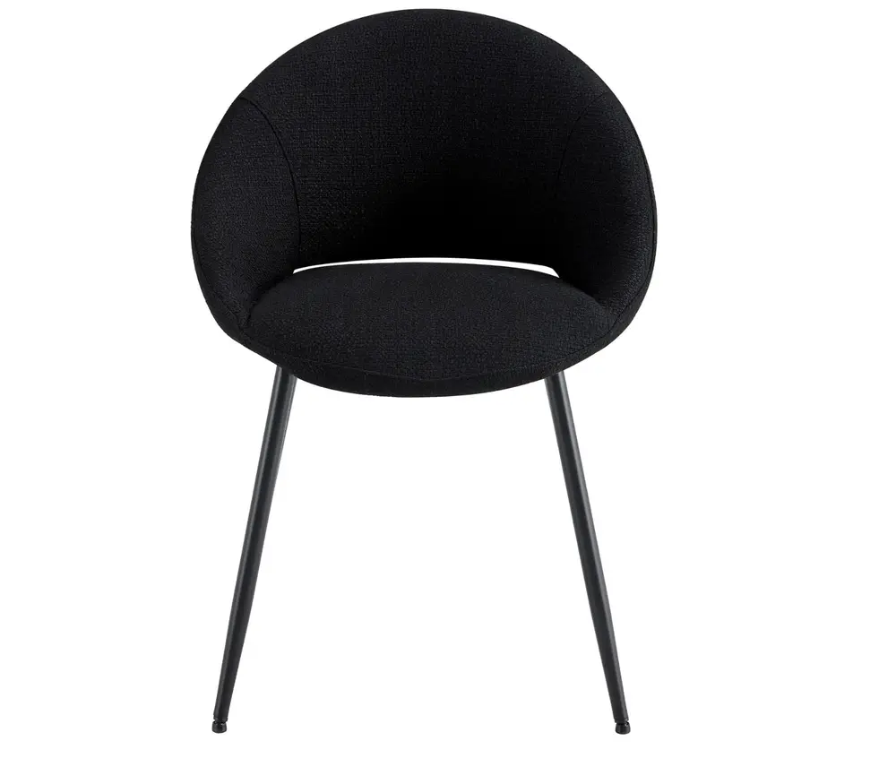 Eetkamerstoel Job is een comfortabele stoel bekleed met een grove textuurstof. Jobs robuuste en toch elegante ontwerp zorgt ervoor dat hij in elk interieur de aandacht trekt. De ronde vorm en smalle opening in de rugleuning geven Job een twist en maken de stoel een echte blikvanger! Job heeft een stevig zwart metalen frame dat ervoor zorgt dat de stoel niet alleen stijlvol maar ook duurzaam is.